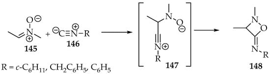 - Moderhack, D.; Lorke, M. Stable 4-imino-1,2-oxazetidines from N-neopentylidene-tert-butylamine N-oxide and isocyanides. Angew. Chem. Int. Ed. Eng. 1980, 19, 45–46. [Google Scholar] [CrossRef]