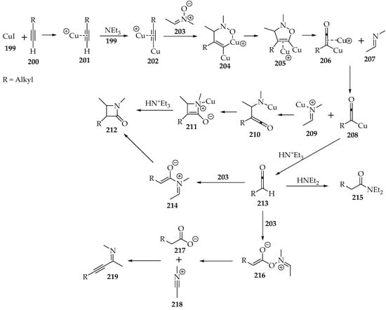 - Malig, T.C.; Yu, D.; Hein, J.E. A revised mechanism for the Kinugasa reaction. J. Am. Chem. Soc. 2018, 140, 9167–9173. [Google Scholar] [CrossRef]