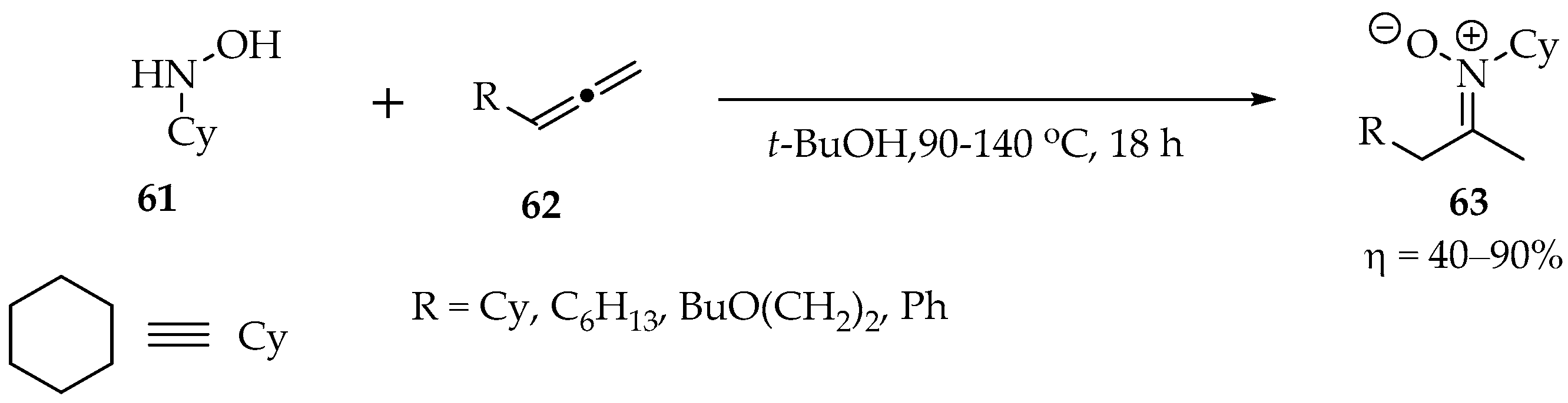 Intramolecular reaction between hydroxylamines and alkynes producing five to seven-membered cyclic nitrones.