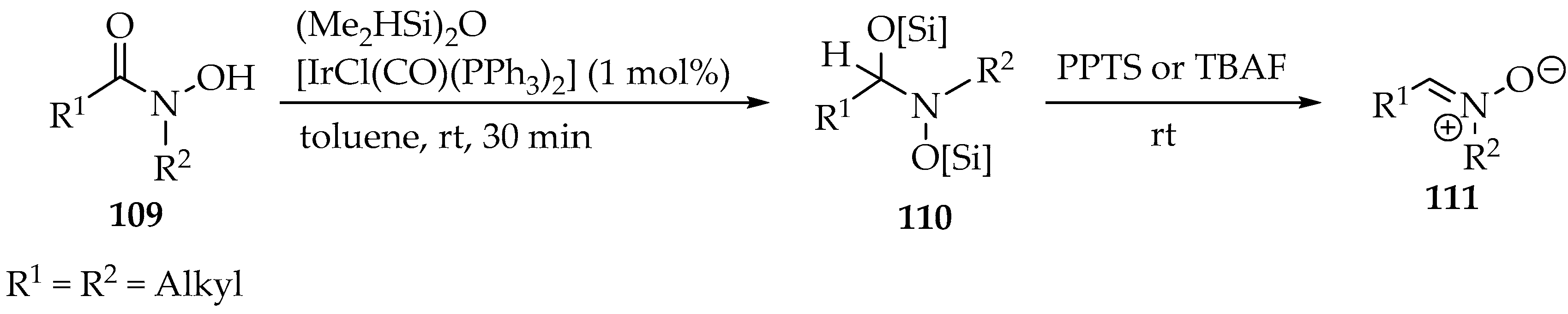 Example of a one-pot nitrone synthesis using NH2OSiMe2(t-Bu).