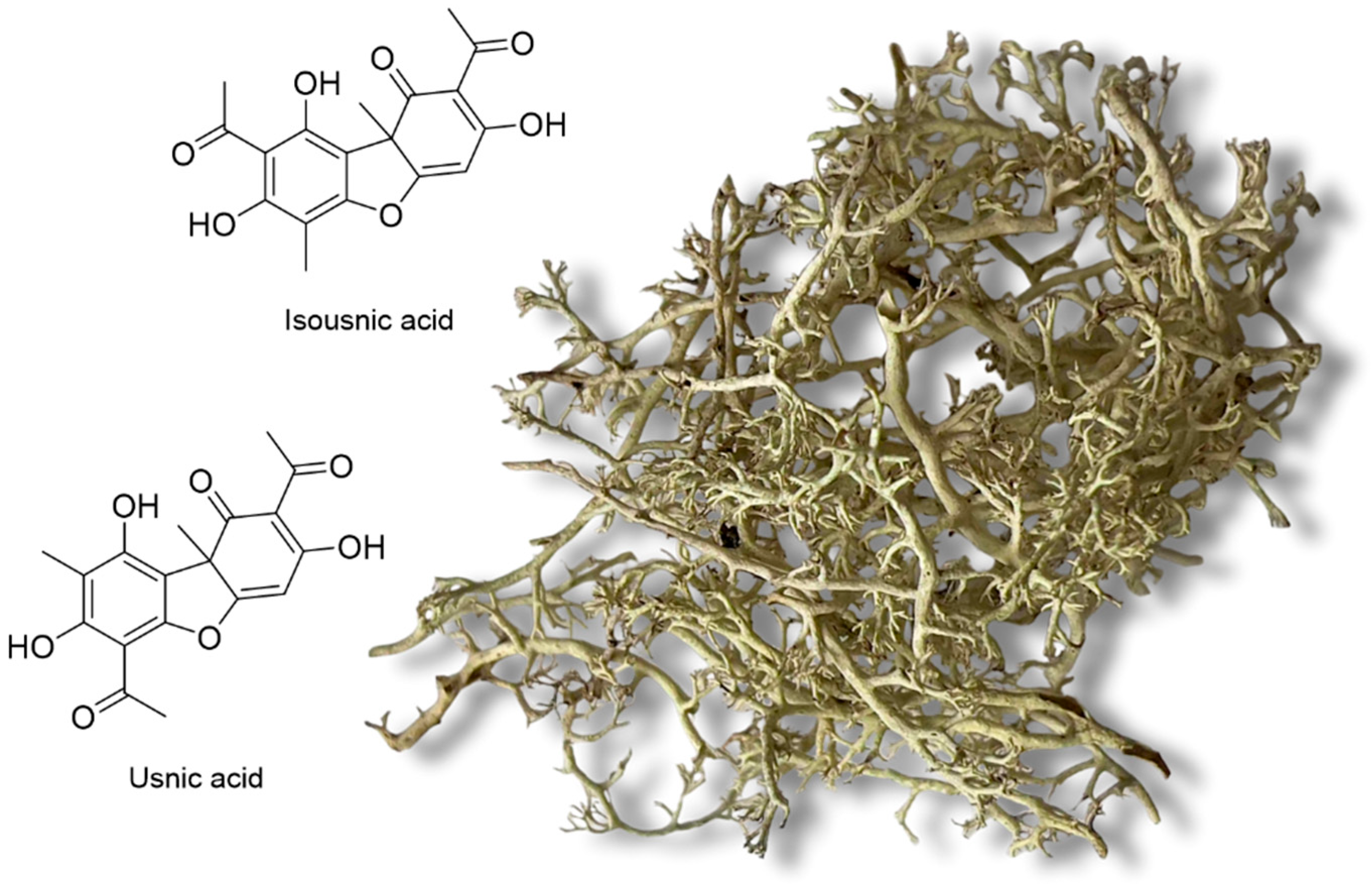 Ísleifsdóttir, D.; Xu, M.; Biwersi, M.; Leblanc, M.-J.; Heiðmarsson, S.; Pálsson, S.; Sorensen, J.L.; Viktorsson, E.Ö.; Ólafsdóttir, E.S. Is the Reindeer Lichen Cladonia arbuscula Really Producing Isousnic Acid? A Chemotaxonomy Query. Molecules 2026, 31, 143. https://doi.org/10.3390/molecules31010143