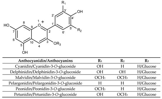 - Khoo, H.E.; Azlan, A.; Tang, S.T.; Lim, S.M. Anthocyanidins and Anthocyanins: Colored Pigments as Food, Pharmaceutical Ingredients, and the Potential Health Benefits. Food Nutr. Res. 2017, 61, 1361779. [Google Scholar] [CrossRef] [PubMed]