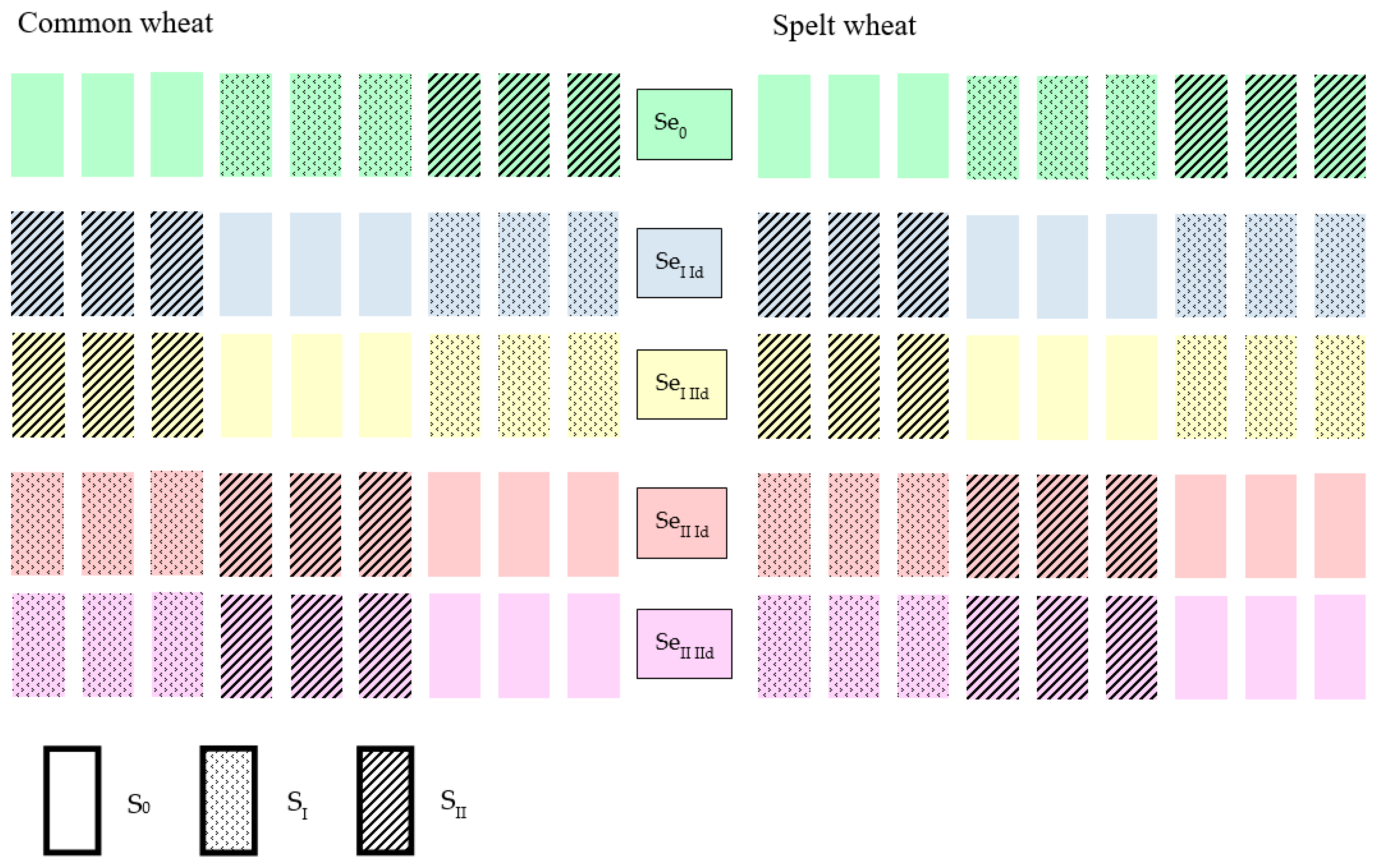 - Brodowska, M.; Kurzyna-Szklarek, M.; Czeczko, R. Evaluation of the effect of sulphur and selenium applications on copper and zinc content in spelt wheat (Triticum spelta L.) and common wheat (Triticum aestivum L.). J. Elementol. 2025, 30, 527–545. [Google Scholar] [CrossRef]