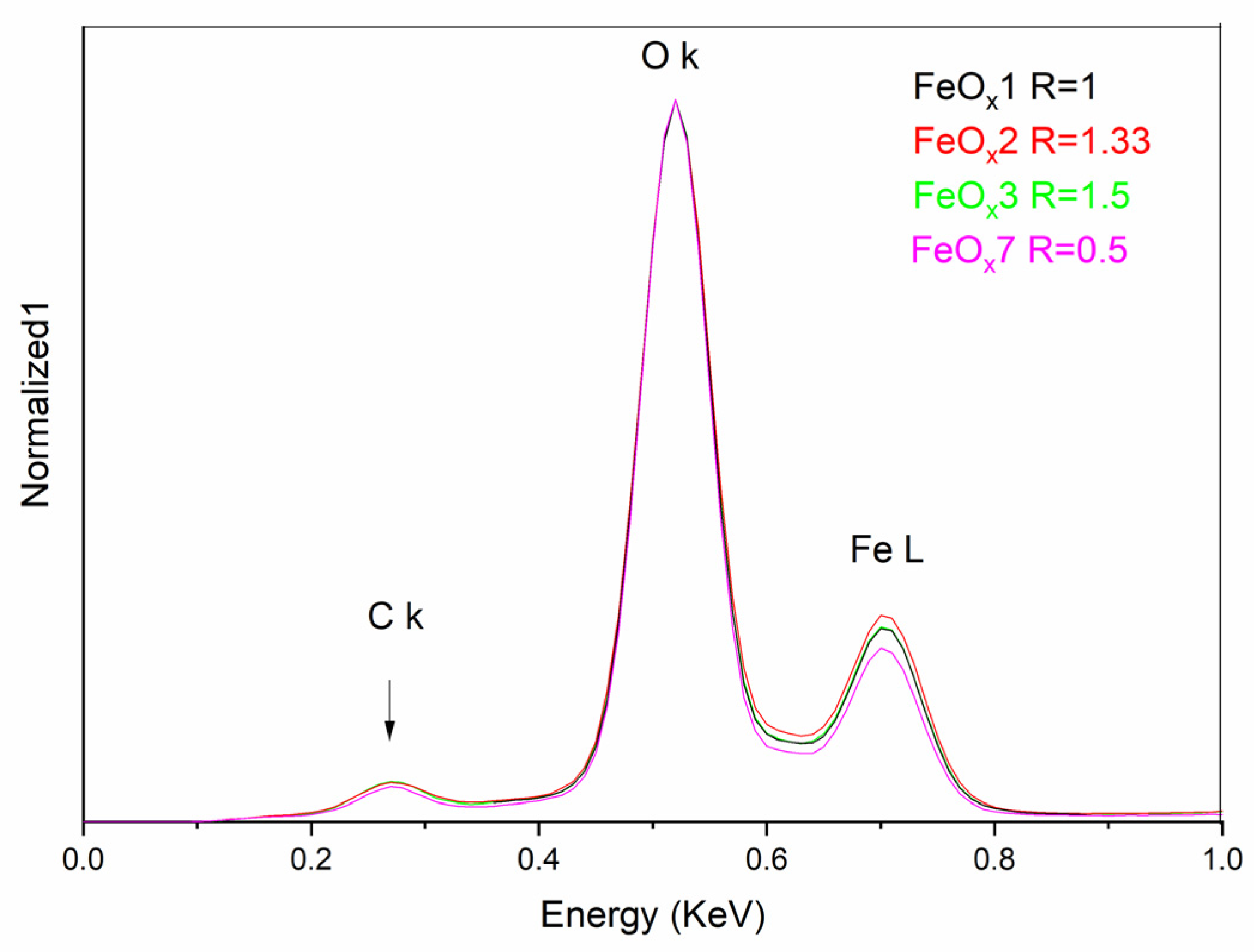 | Sample | C | O | Fe | X from Fe2O3+x |