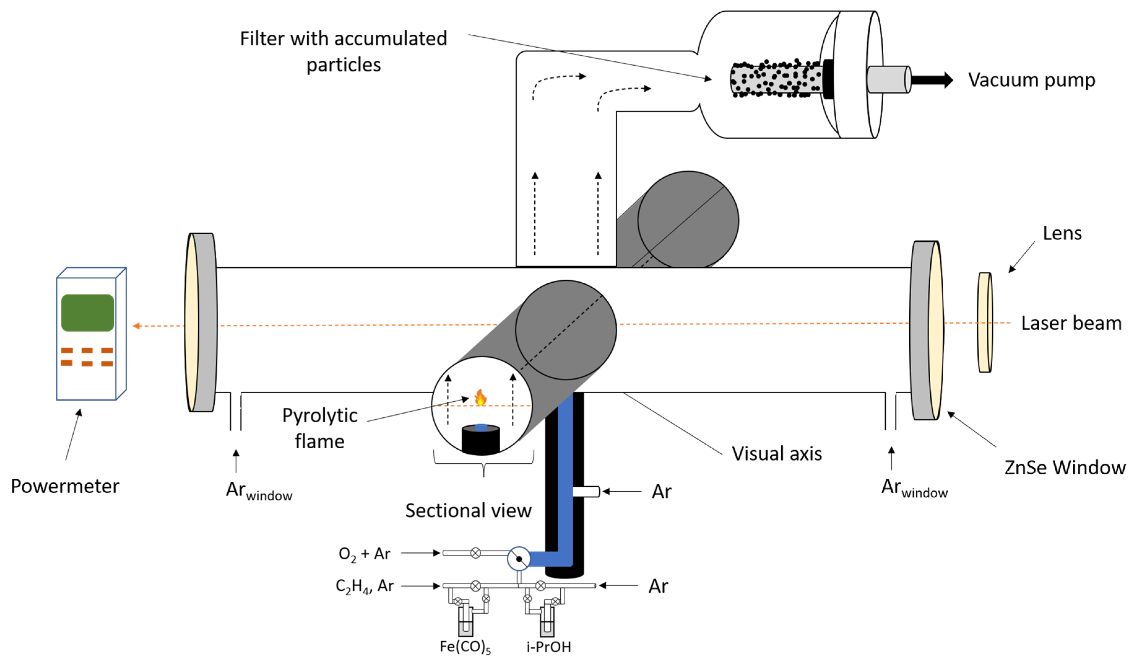 - Dumitrache, F.; Criveanu, A.; Lungu, I.; Fleaca, C.; Gavrila-Florescu, L.; Morjan, I.; Stamatin, I.; Balan, A.; Socoliuc, V.; Vasile, B. Experimental Study Regarding the Synthesis of Iron Oxide Nanoparticles by Laser Pyrolysis Using Ethanol as Sensitizer; Morpho-Structural Alterations Using Thermal Treatments on the Synthesized Nanoparticles. Coatings 2025, 15, 234. [Google Scholar] [CrossRef]