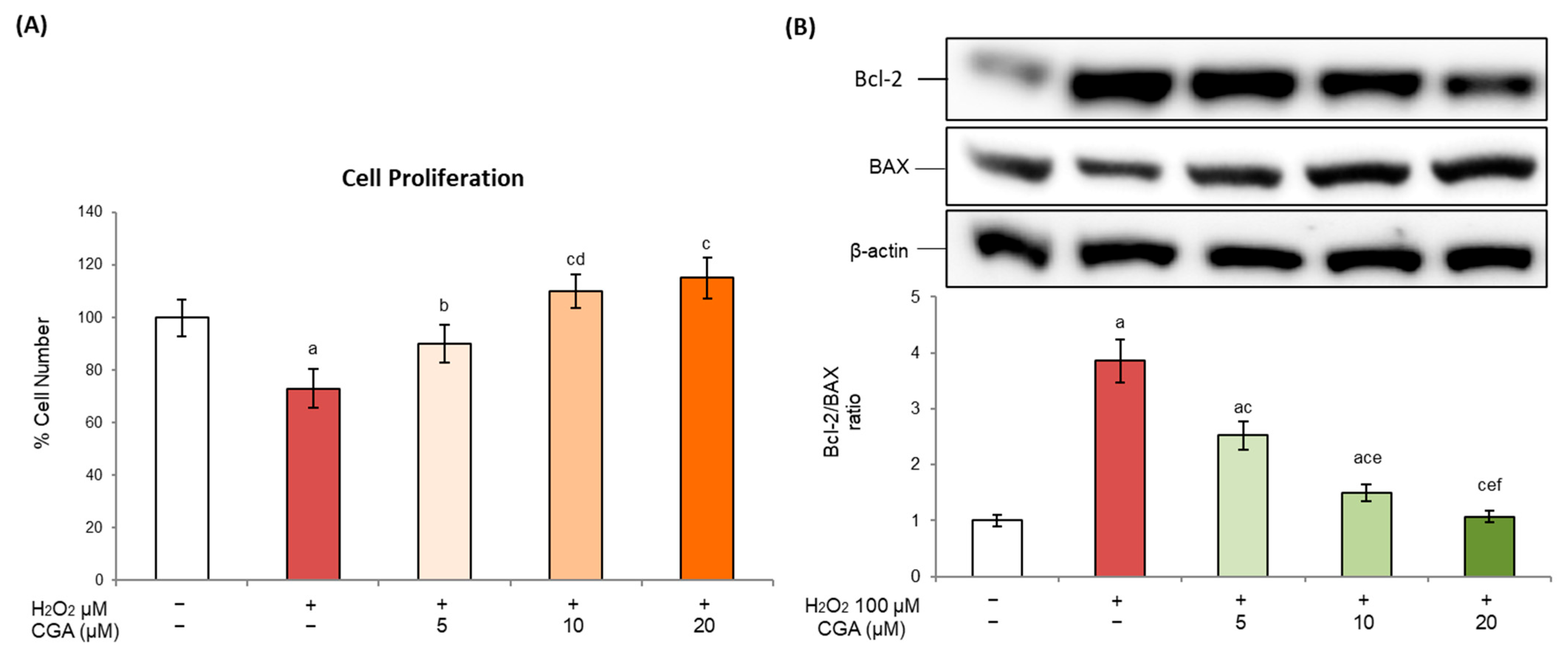2.3. Effects of Chlorogenic Acid on Cell Proliferation and Apoptotic Regulation