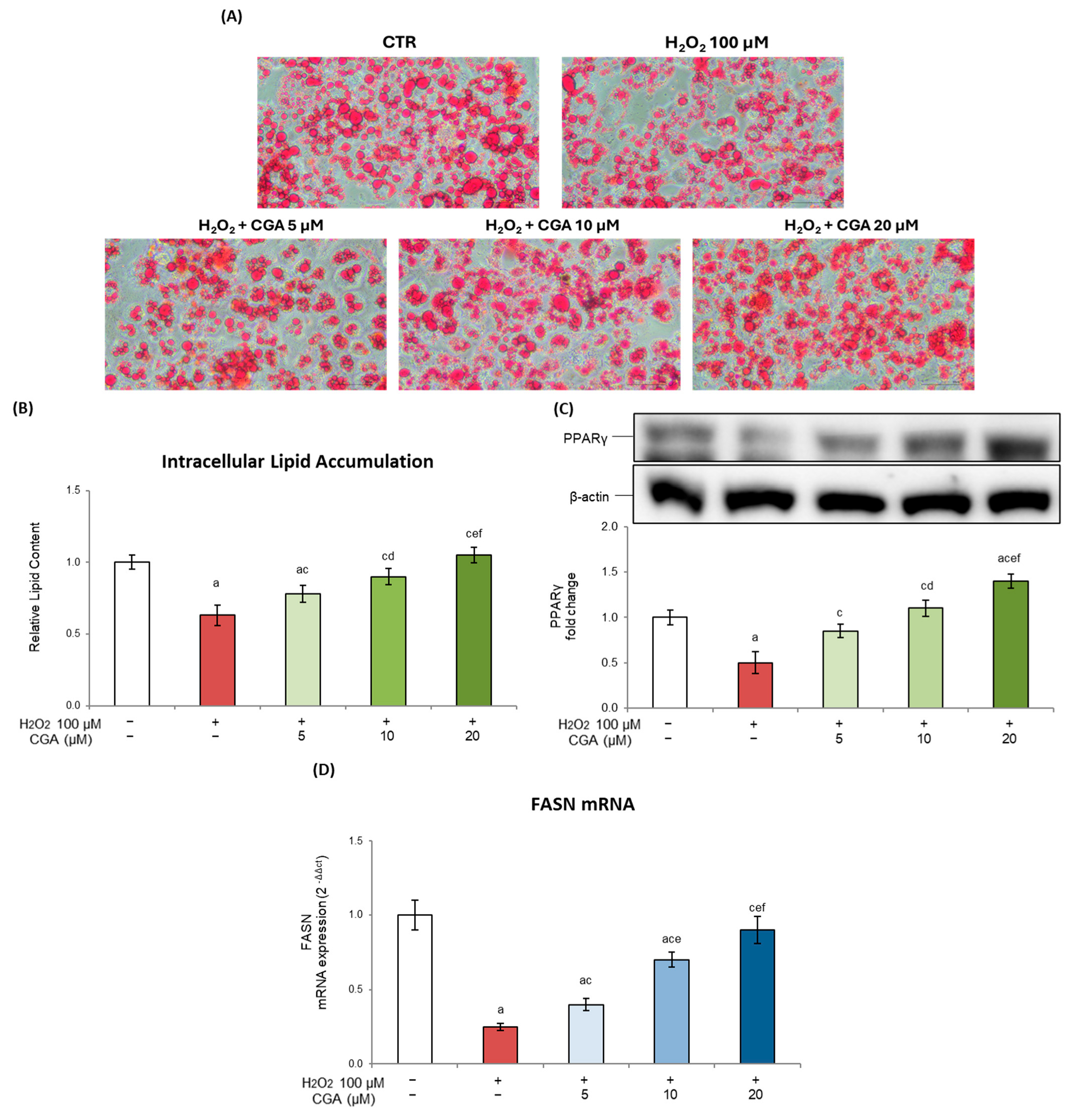2.6. Chlorogenic Acid’s Effects on Adipogenesis and Lipid Accumulation in Senescent 3T3-L1 Cells