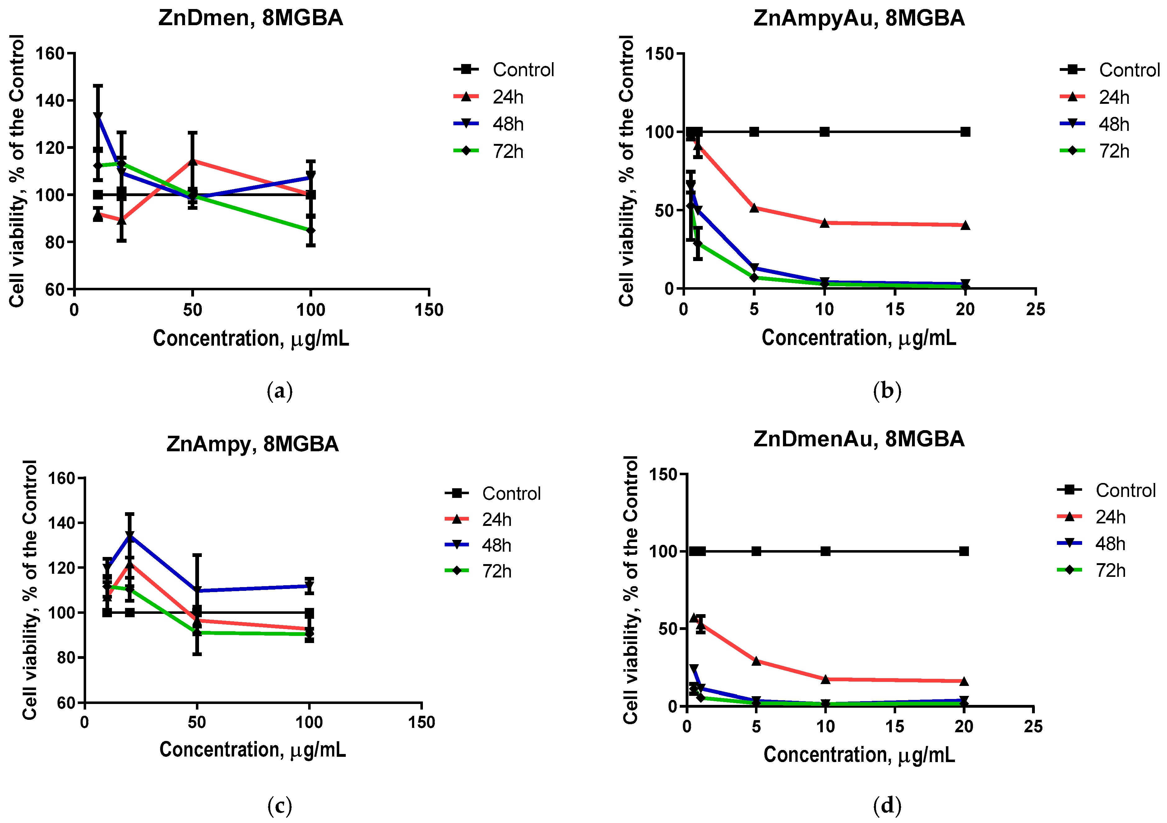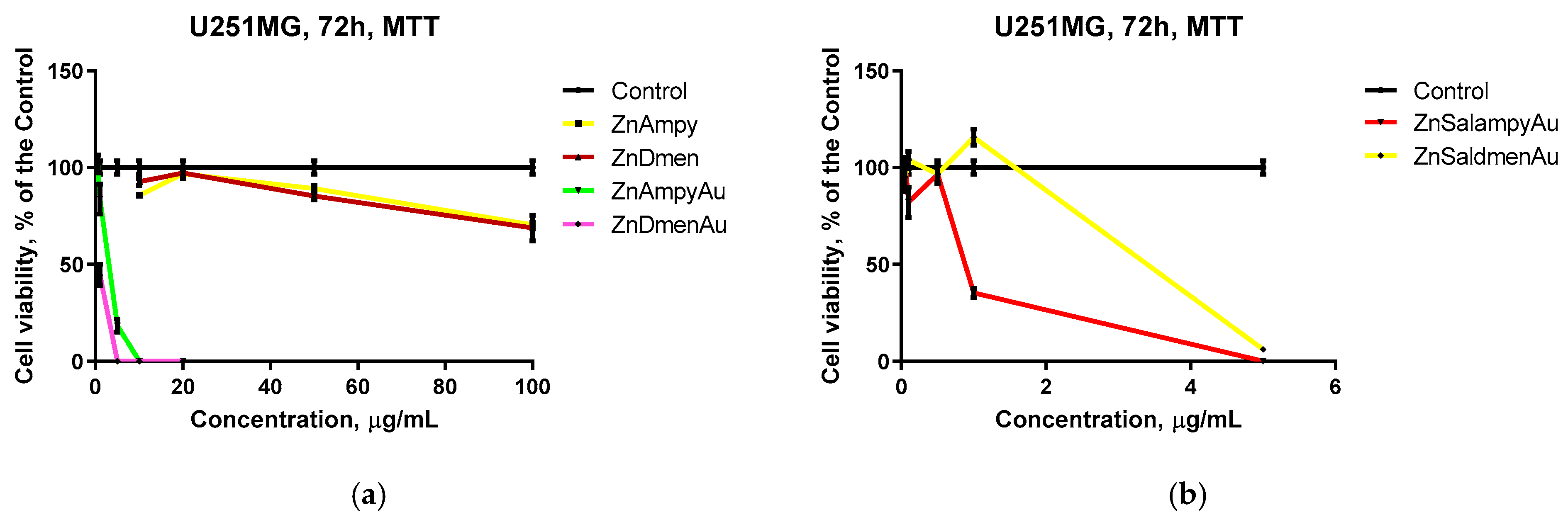 | ZnDmen | MTT | - | - | - | - | 41.7 ± 2.4 (71.01 ± 2.6) |