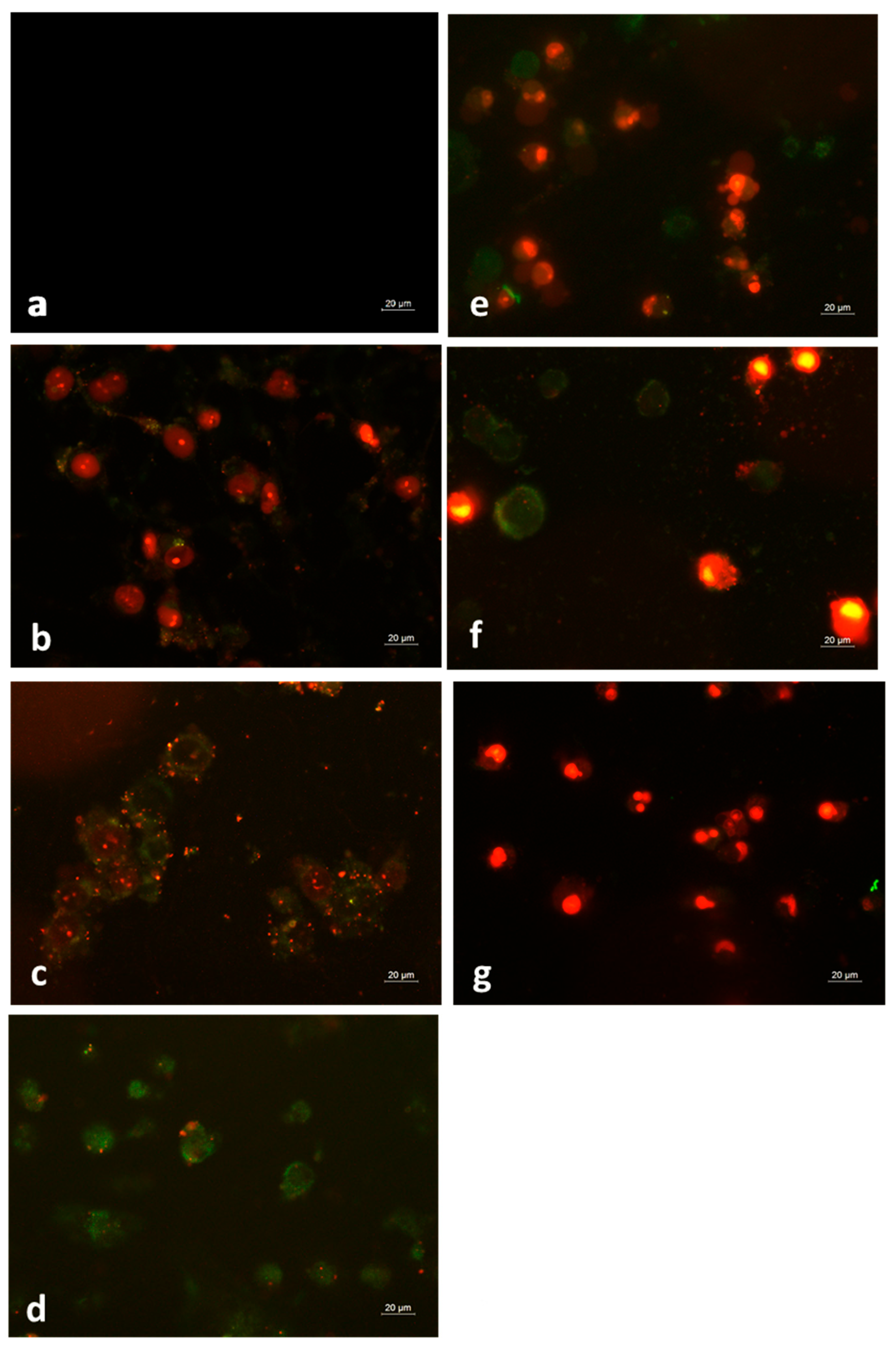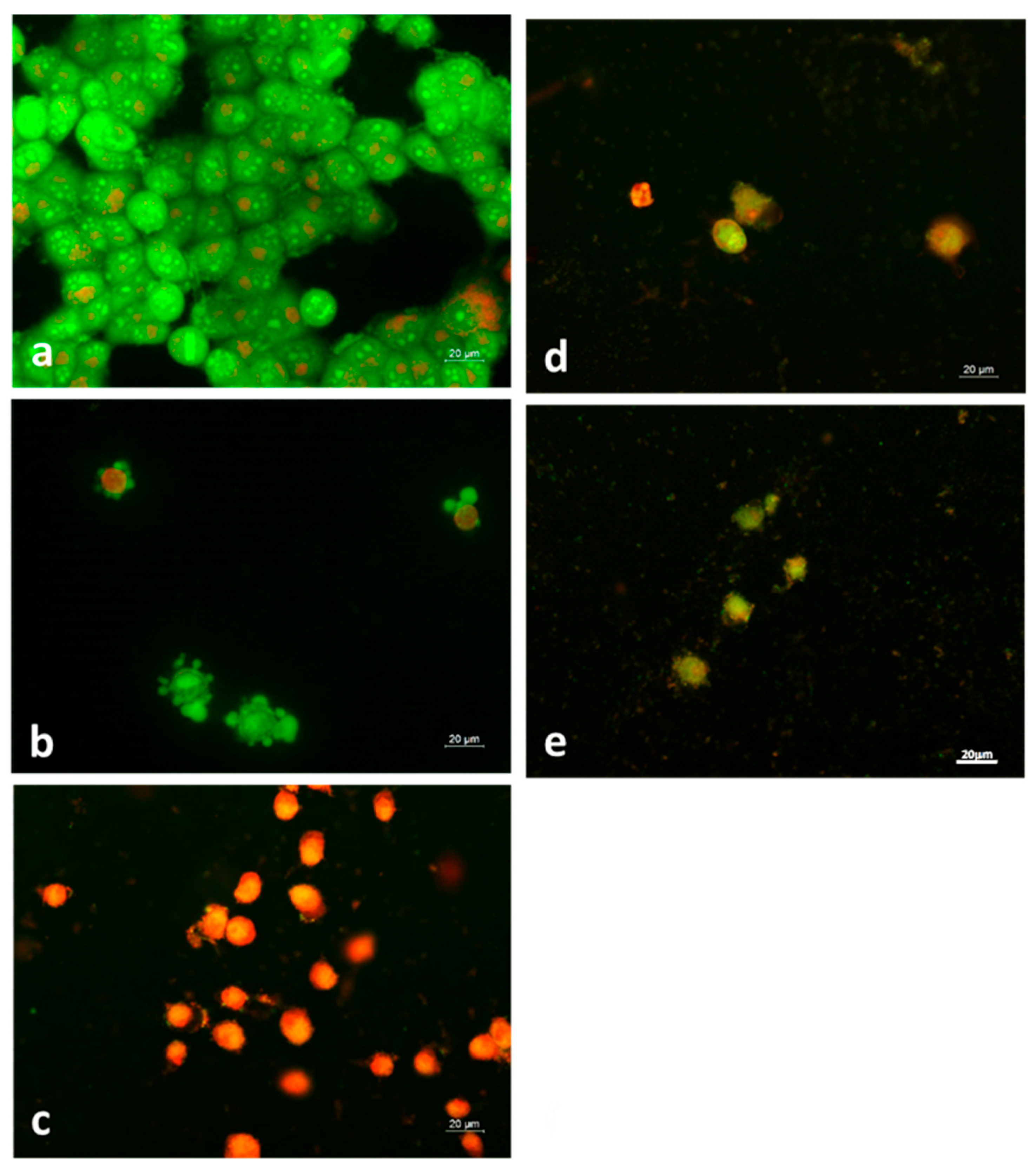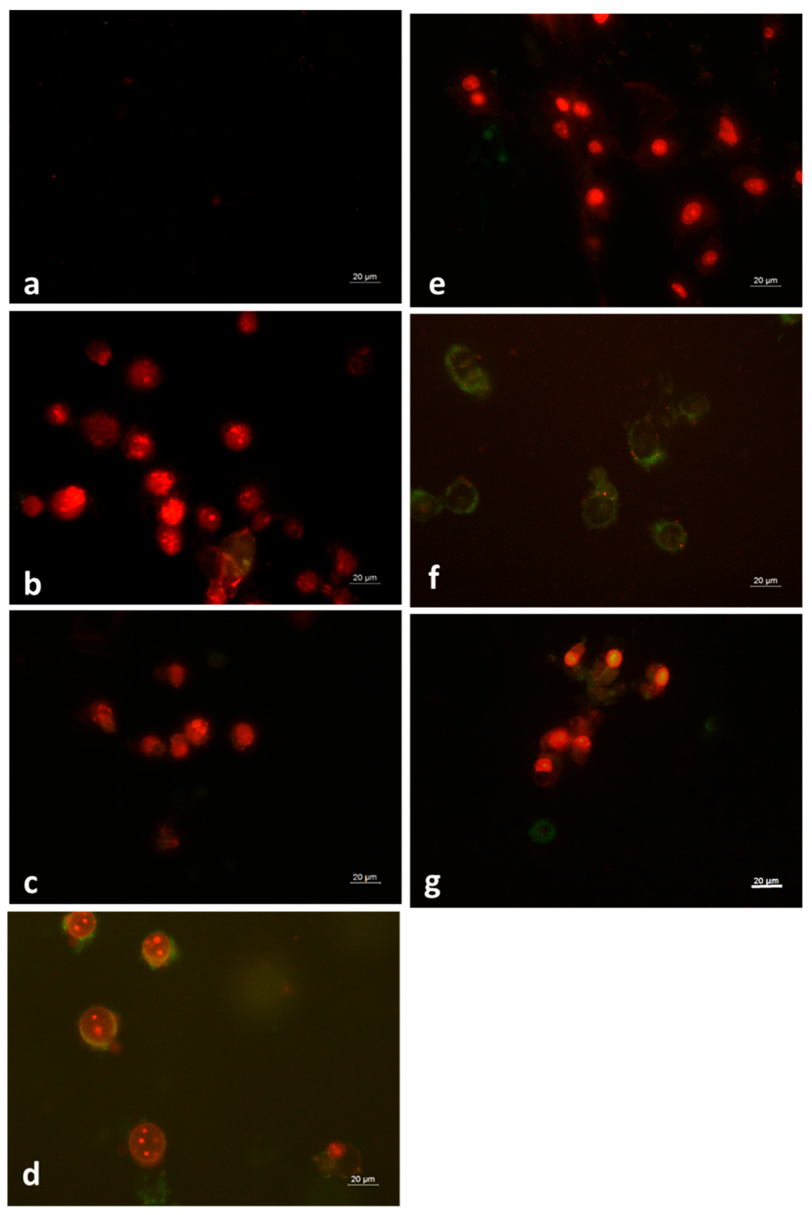 2.4.2. Double Staining with Acridine Orange and Propidium Iodide (AO/PI)