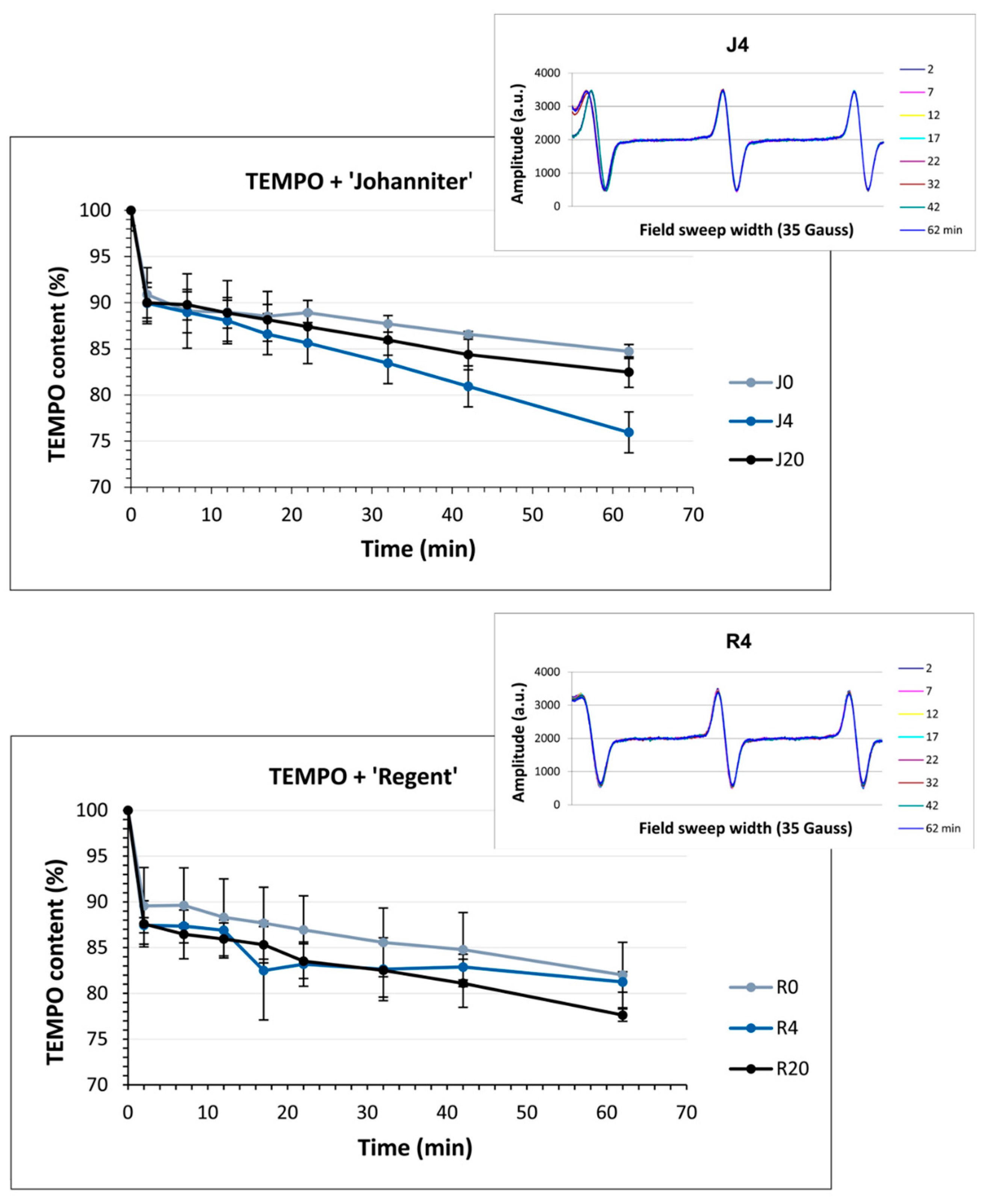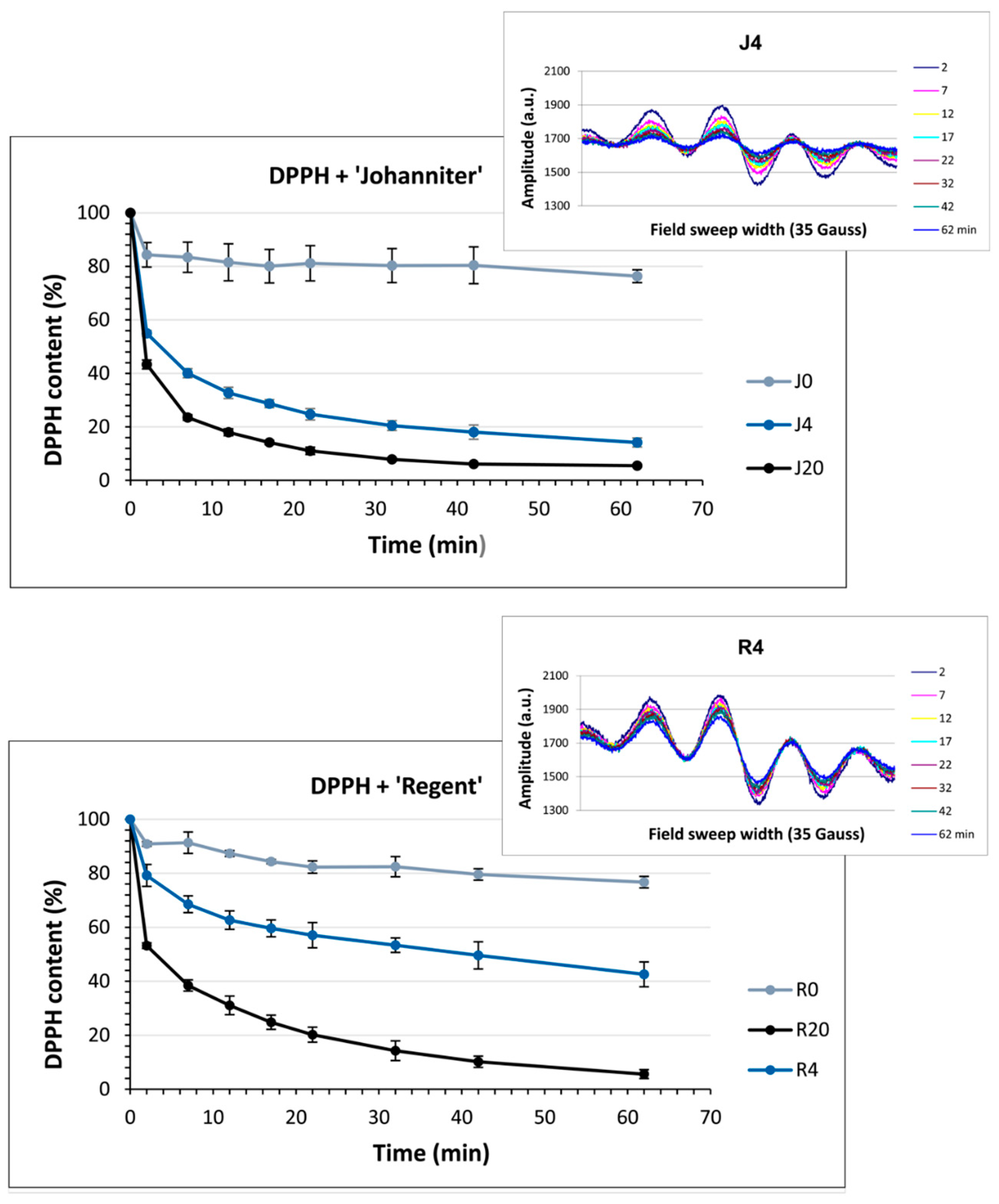 2.8. Antiradical Capacity Measured with EPR