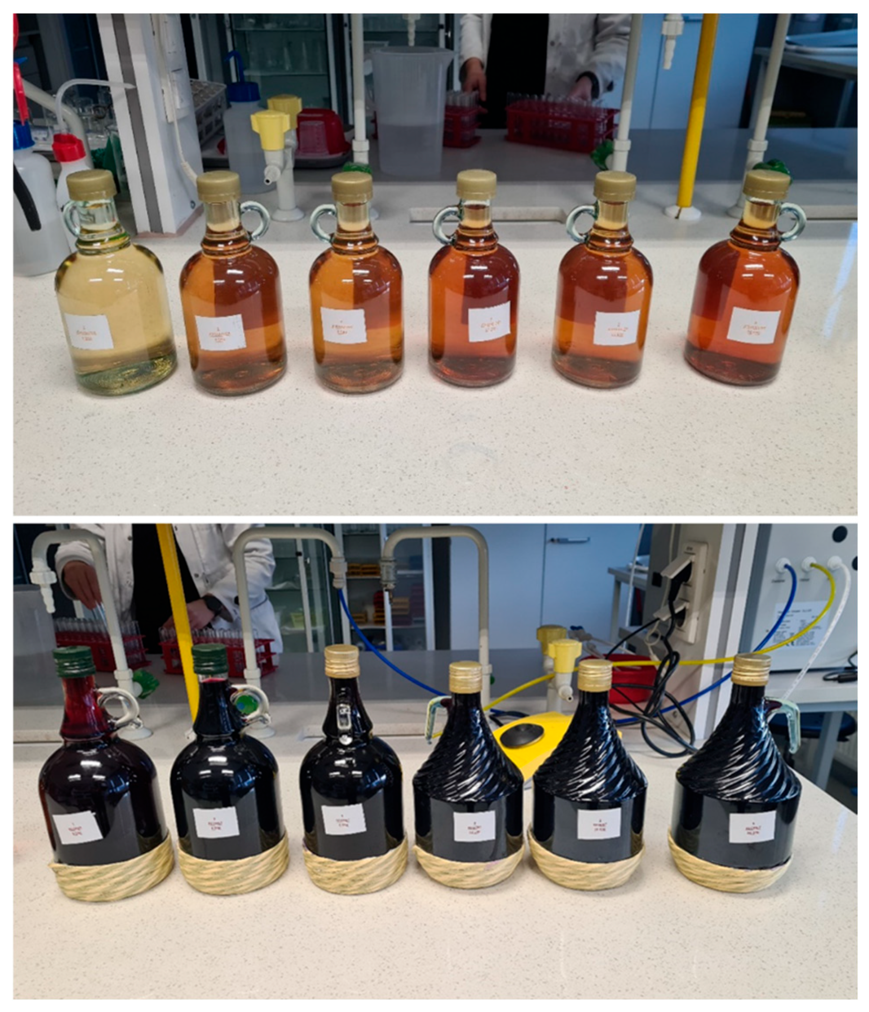 - Ribéreau-Gayon, P.; Glories, Y.; Maujean, A.; Dubourdieu, D. Handbook of Enology, Volume 2: The Chemistry of Wine, Stabilization and Treatments; John Wiley & Sons: Chichester, UK, 2006. [Google Scholar]