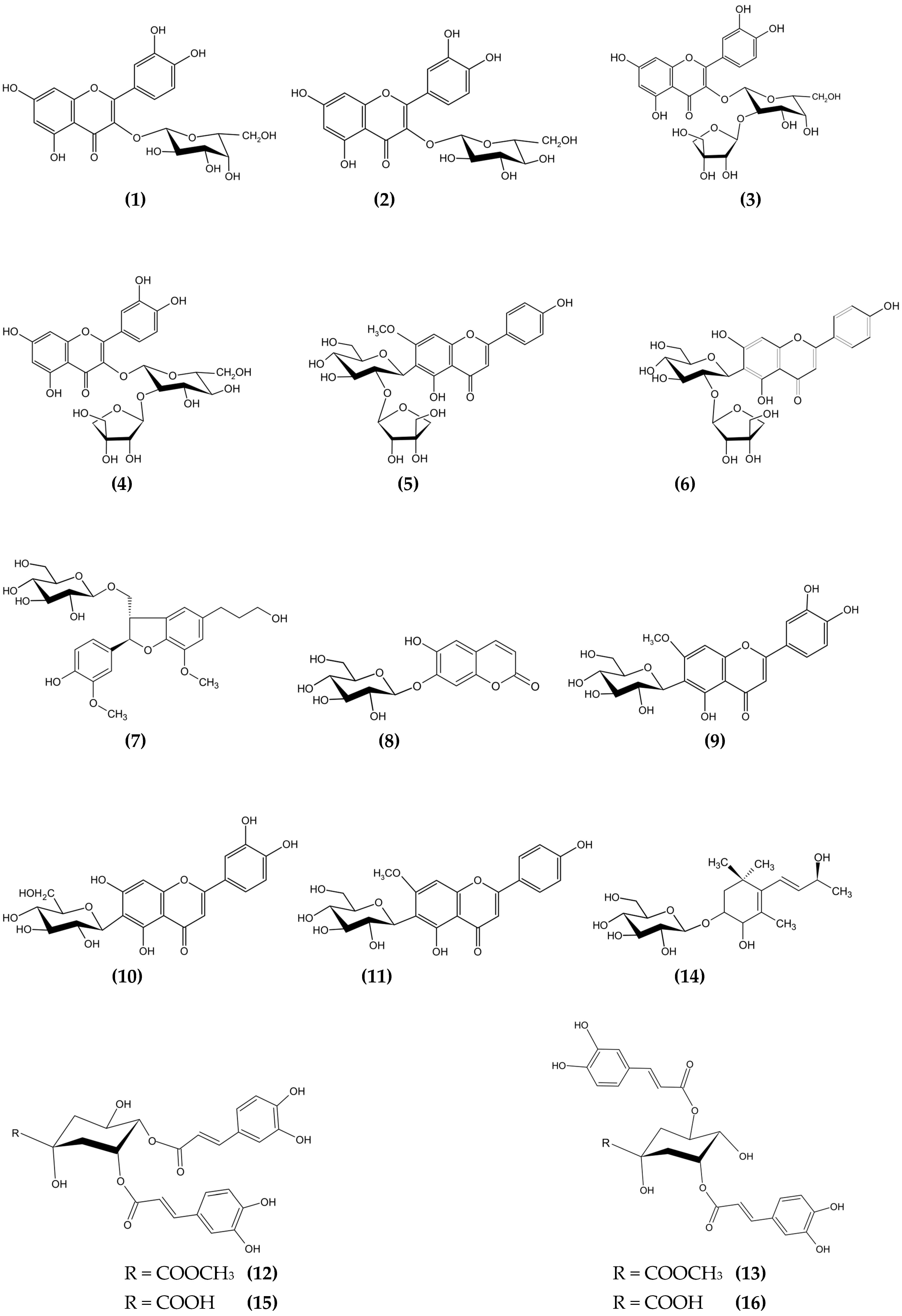 - Sukito, A.; Tachibana, S. Isolation of hyperoside and isoquercitrin from Camellia sasanqua as antioxidant agents. Pak. J. Biol. Sci. 2014, 17, 999–1006. [Google Scholar] [CrossRef]