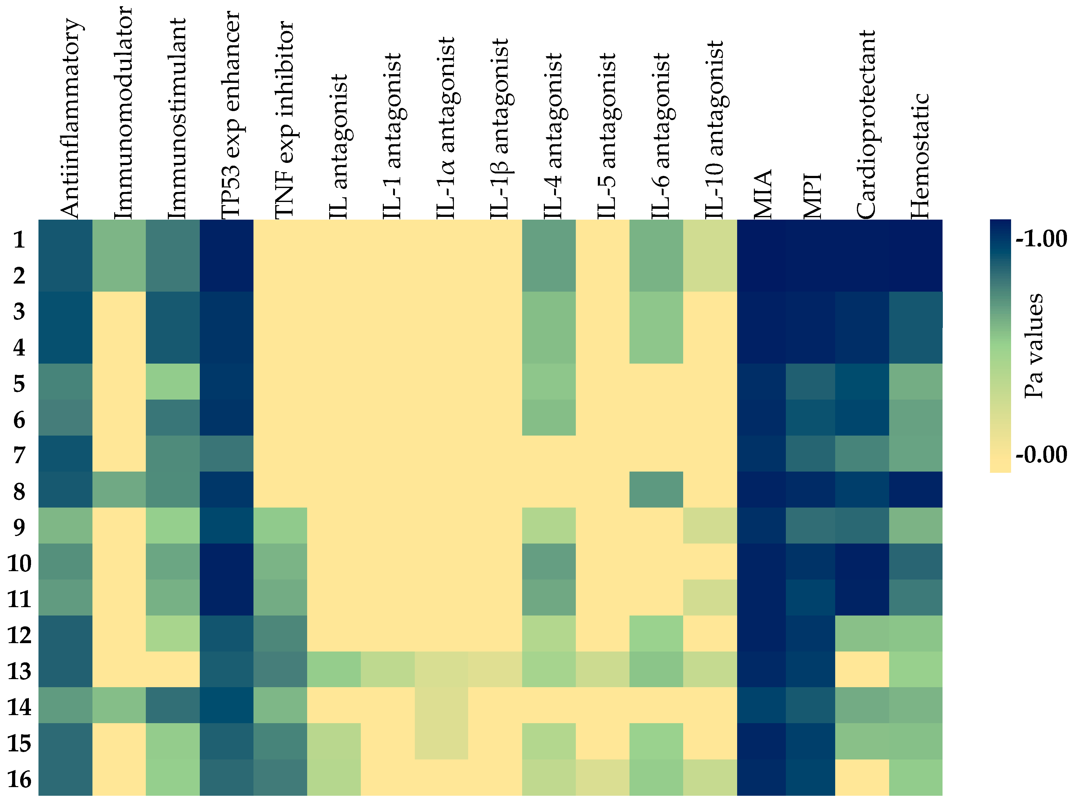 | Compounds | IL Antagonist | IL-1 Antagonist | IL-1α Antagonist | IL-1β Antagonist | IL-4 Antagonist | IL-5 Antagonist | IL-6 Antagonist | IL-10 Antagonist | ||||||||
