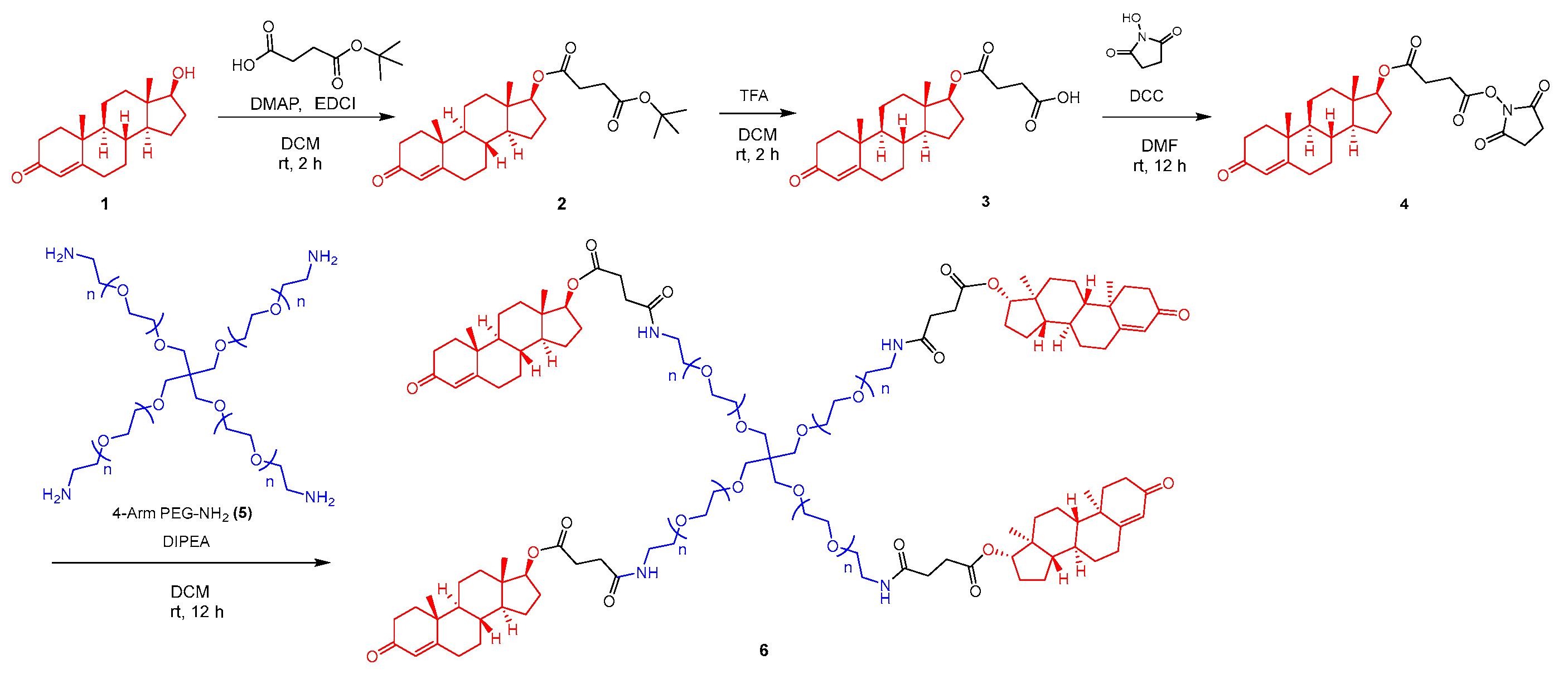 2.1. Synthesis of Four-Armed PEG Testosterone