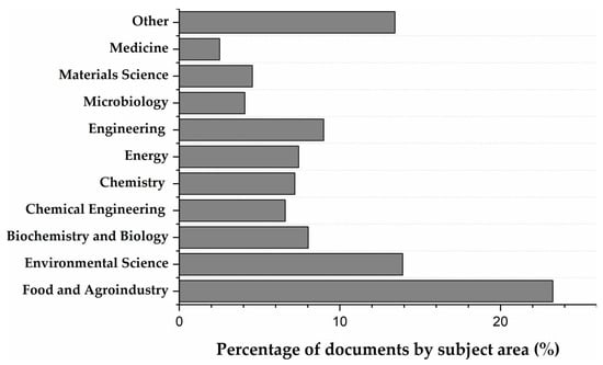 Research by subject area. Data obtained from Scopus using the equation: (TITLE-ABS-KEY ((corn OR maize) AND by-products) AND TITLE-ABS-KEY (cob OR husk OR leaves OR silk) AND ALL (food OR application)) AND PUBYEAR > 2003.