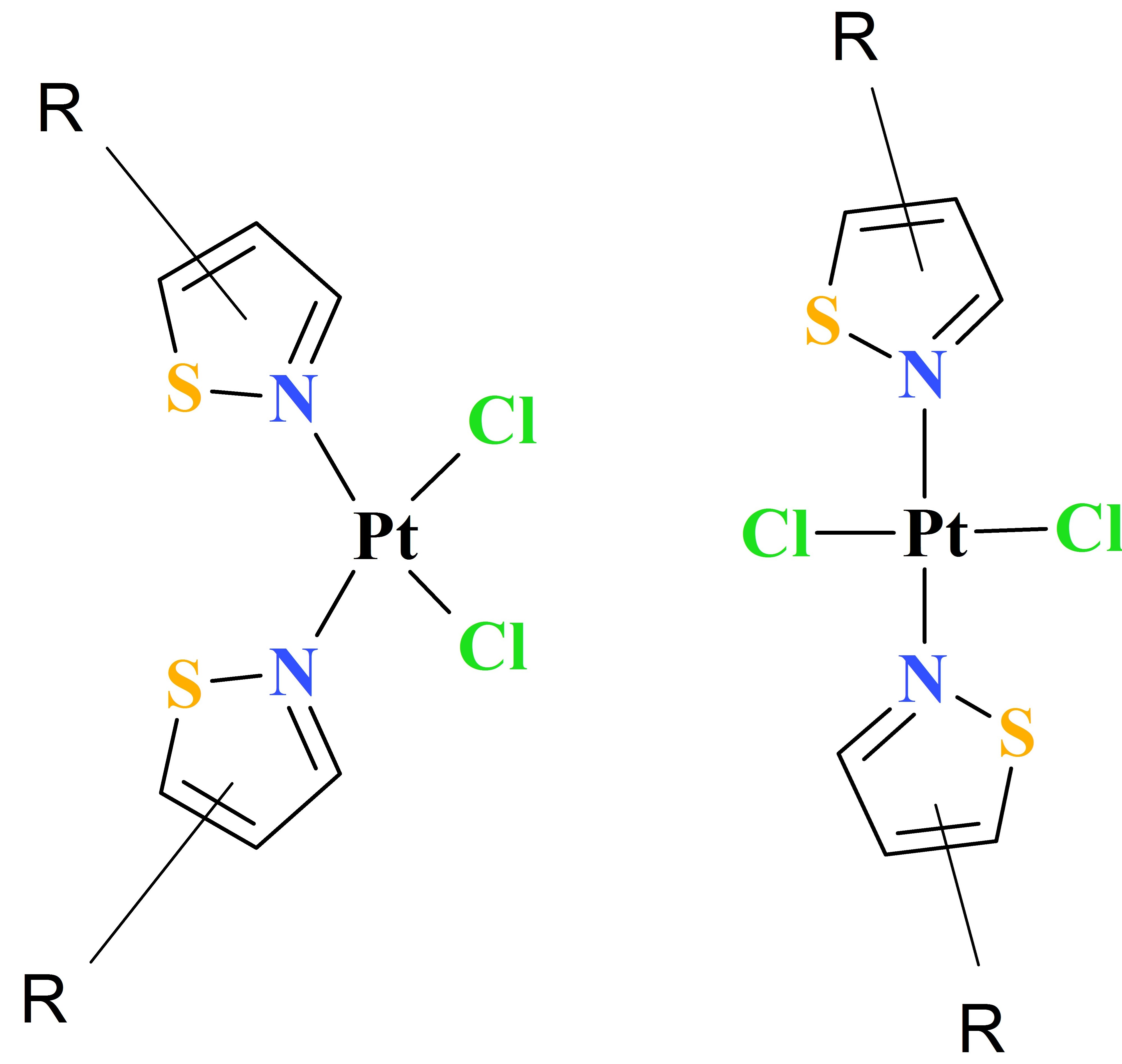 2.1. Theoretical Considerations on the Complexation of 4-Nitroisothiazoles by Platinum Ion Pt2+