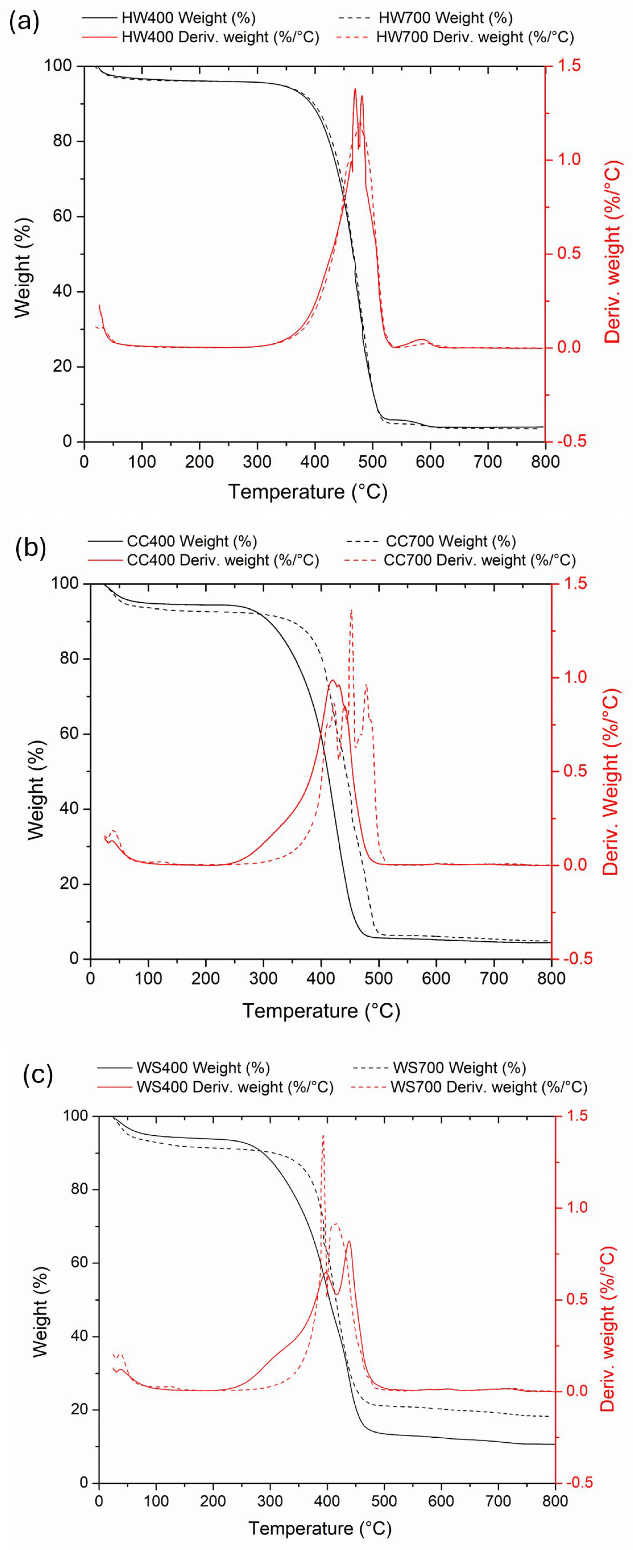 | Total Weight Loss (%) | 20–800 °C | 96.0 | 96.5 | 95.5 | 95.1 | 89.3 | 81.8 |