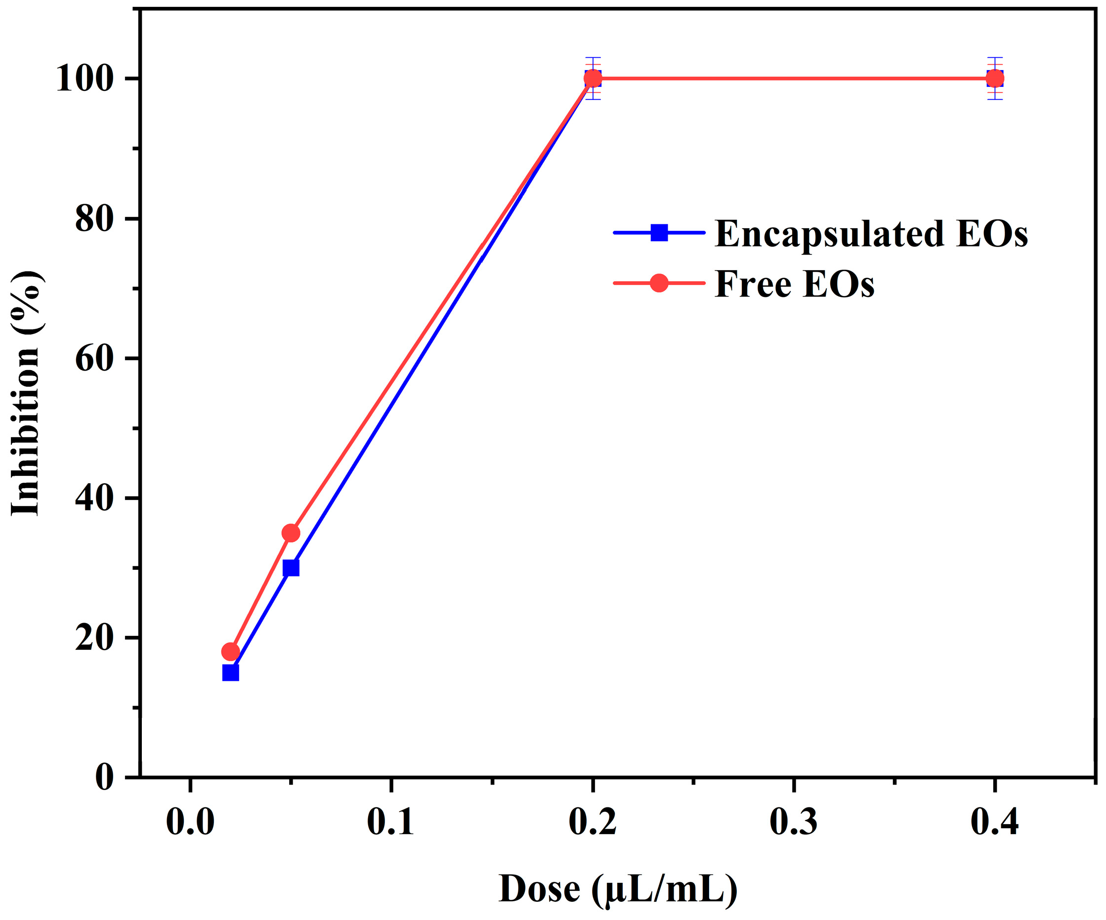 2.3. Effect of Encapsulated EO Formulation on Fungal Contamination