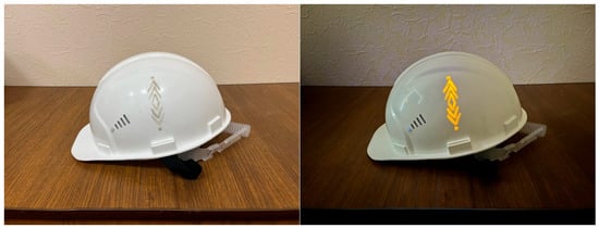 Paints and varnishes were obtained using the synthesized pigments. Nitrocellulose varnish and colorless polyvinyl chloride varnish were used as the bases. We injected 20% (wt.) synthesized pigment CaS:Mn/Pb and 25% (by weight) chalk. The luminescence intensity of the phosphor in the powder was 3.1 relative units, and in the coating was 3.01 relative units, with almost no losses. Figure 16 shows a photograph of a product decorated with the developed materials under normal lighting and long-wavelength ultraviolet light.