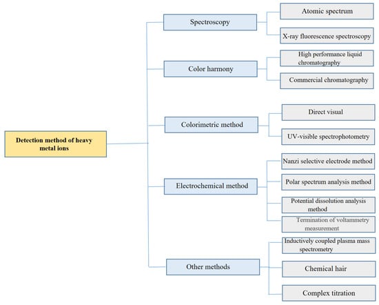 Currently, the following methods are used to detect heavy metal ions in water resources (as shown in Figure 1):