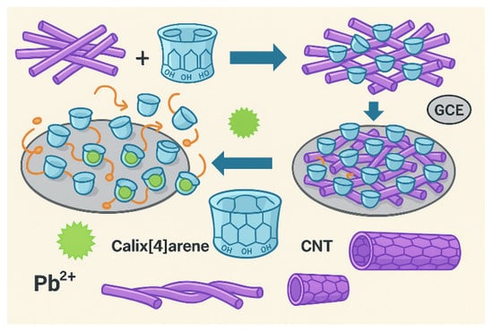 - Wang, L.; Wang, X.; Shi, G.; Peng, C.; Ding, Y. Thiacalixarene covalently functionalized multiwalled carbon nanotubes as chemically modified electrode material for detection of ultratrace Pb2+ ions. Anal. Chem. 2012, 84, 10560–10567. [Google Scholar] [CrossRef]