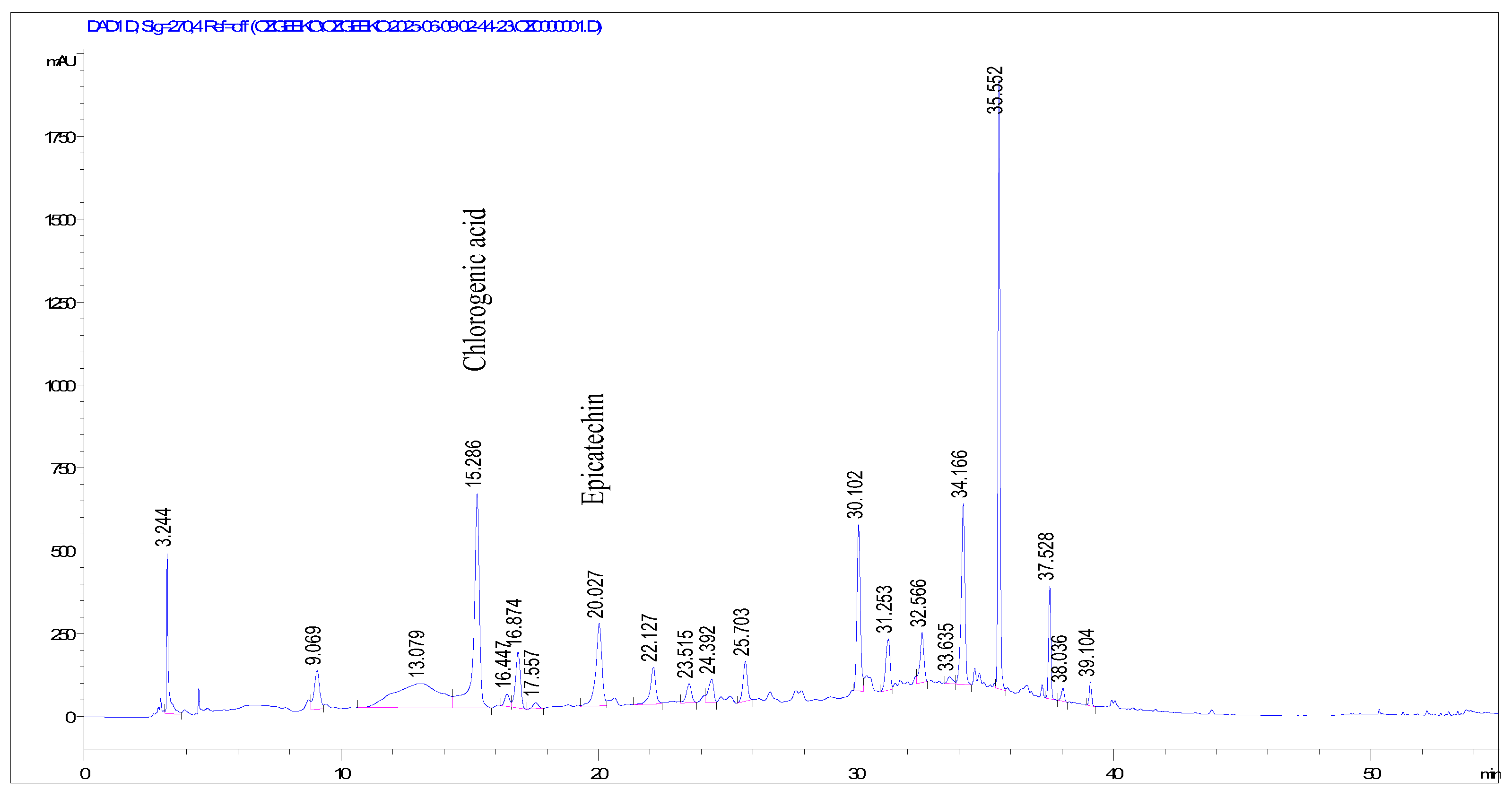 | Epicatechin | 10.4965 ± 0.1128 | 0.4743 ± 0.0051 | 35.9395 ± 0.3519 | 0.3011 ± 0.0030 | 0.0809 ± 0.0029 | 0.00124 ± 0.00004 |