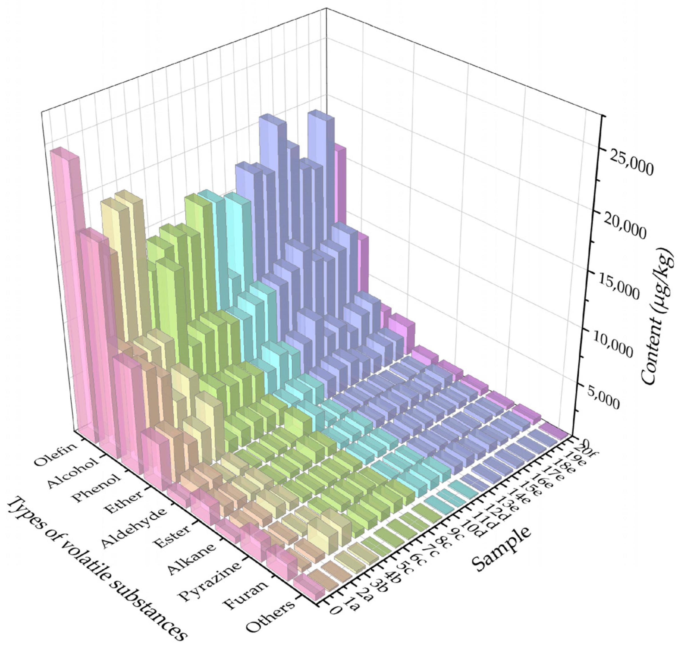 3.6. Qualitative and Quantitative Analysis of Volatile Compounds