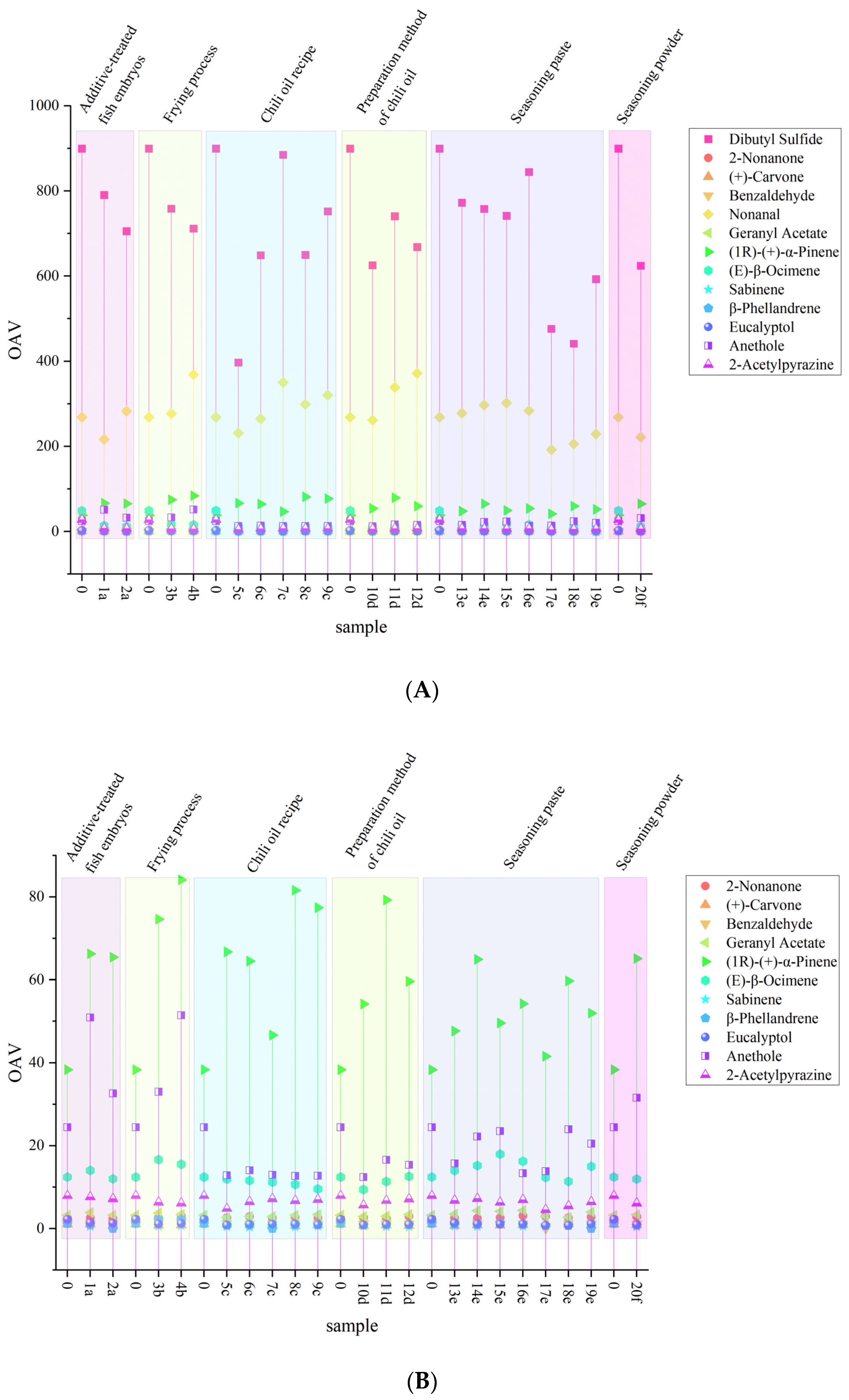2.3. The Impact of Process Changes on the Volatile Compounds of Spicy Anchovies