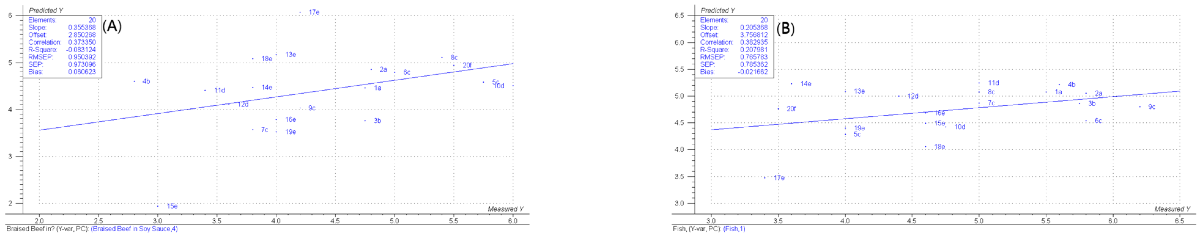 2.4.2. Predictability of Aroma Sensory Properties Based on Key Flavor Compounds