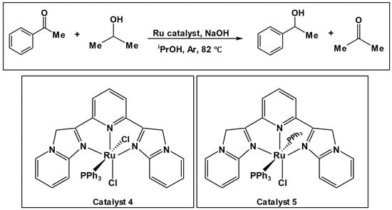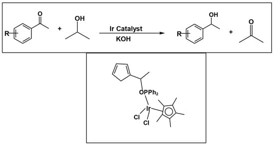 68] reported a base-free catalytic transfer hydrogenation (CTH) of acetophenone using a Ru catalyst, achieving ~90% conversion within 3 h. The method was successfully applied to a wide range of substrates, giving good to excellent conversions.