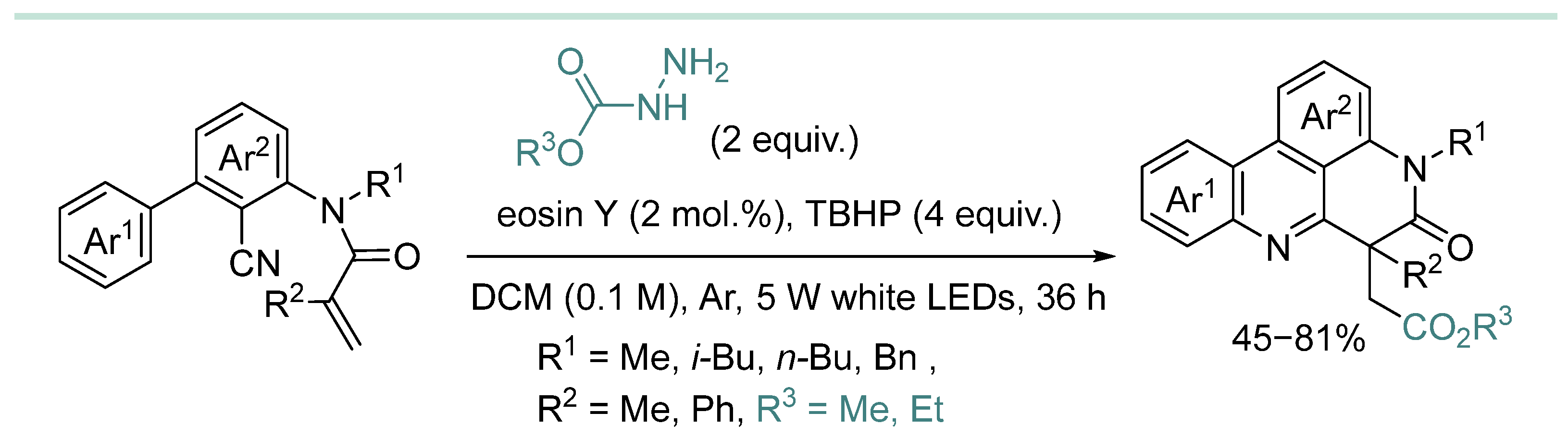 | 3 | Ar | HD (3 equiv.), 4CzIPN (10 mol%), DIPEA (3 equiv.), MeCN, 7 W blue LED, air, rt, 24 h | [132] |