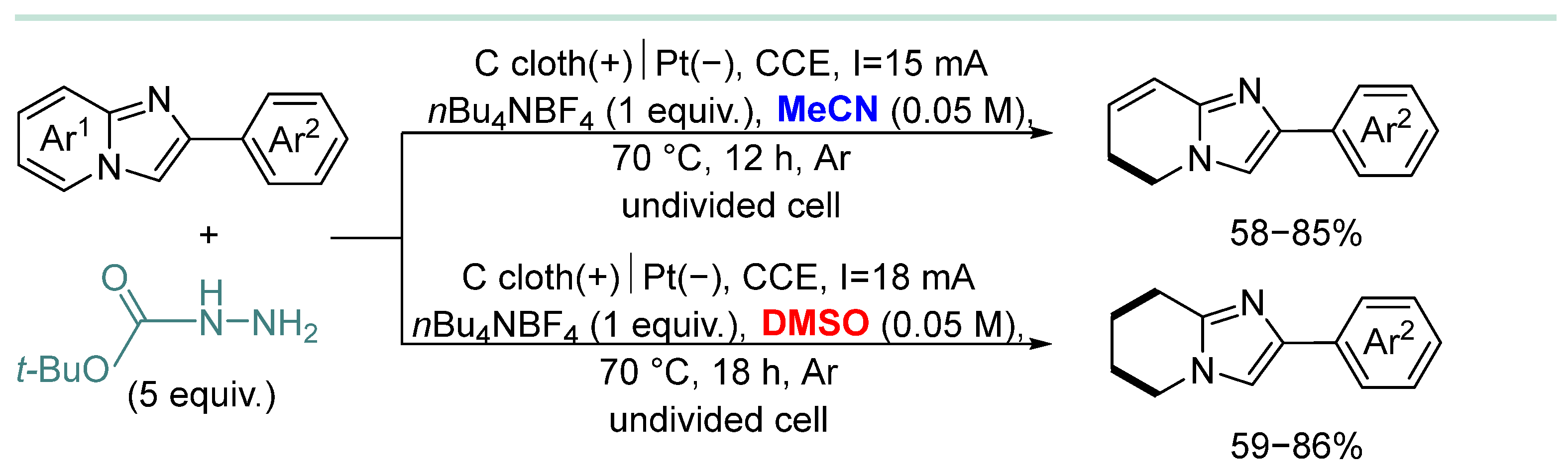 | 6 | Ar | HD (1.5 equiv.), Co(OAc)2 (10 mol%), NaOPiv (2 equiv.), EtOH (0.03 M), undivided cell, RVC(+)|Pt(−), CCE 8 mA, N2, rt, 12 h | [71] |