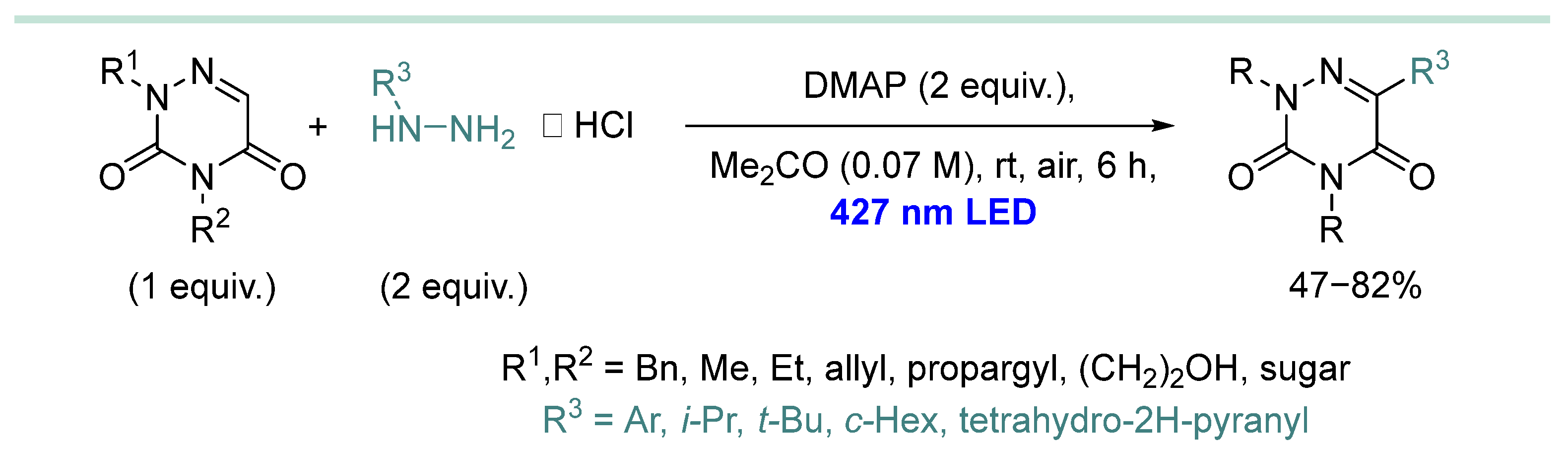 | 12 | Ar, c-Hex c-Pent, (CH2)2OH | HD (1 equiv.), MeCN (0.1 M), 400 nm LED, rt, 12 h | [125] |