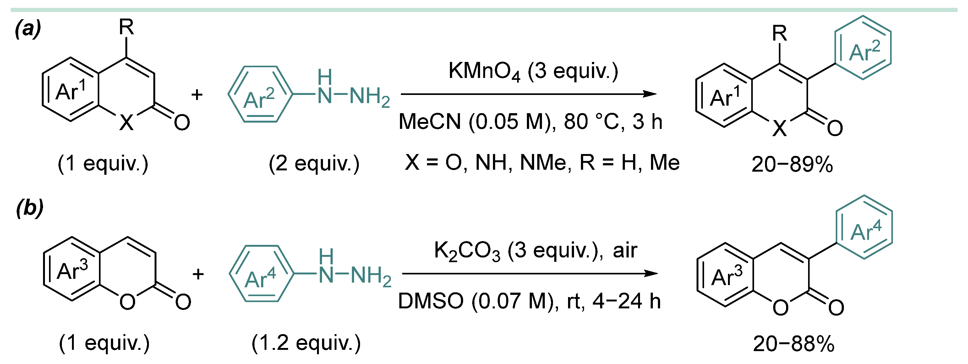 - Yuan, J.-W.; Li, W.-J.; Yang, L.-R.; Mao, P.; Xiao, Y.-M. Regioselective C-3 Arylation of Coumarins with Arylhydrazines via Radical Oxidation by Potassium Permanganate. Z. Für Naturforschung B 2016, 71, 1115–1123. [Google Scholar] [CrossRef]