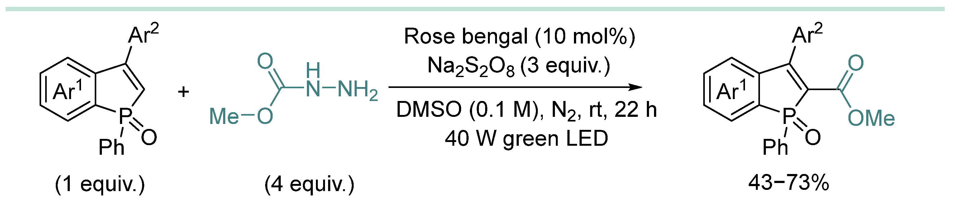 | 4 | CO2Me, CO2Et, t-Bu | HD (4 equiv.), rose bengal (5 mol%), Na2S2O8 (3 equiv.), DMSO (0.08 M), blue LED, rt, 6–12 h. | [109] |