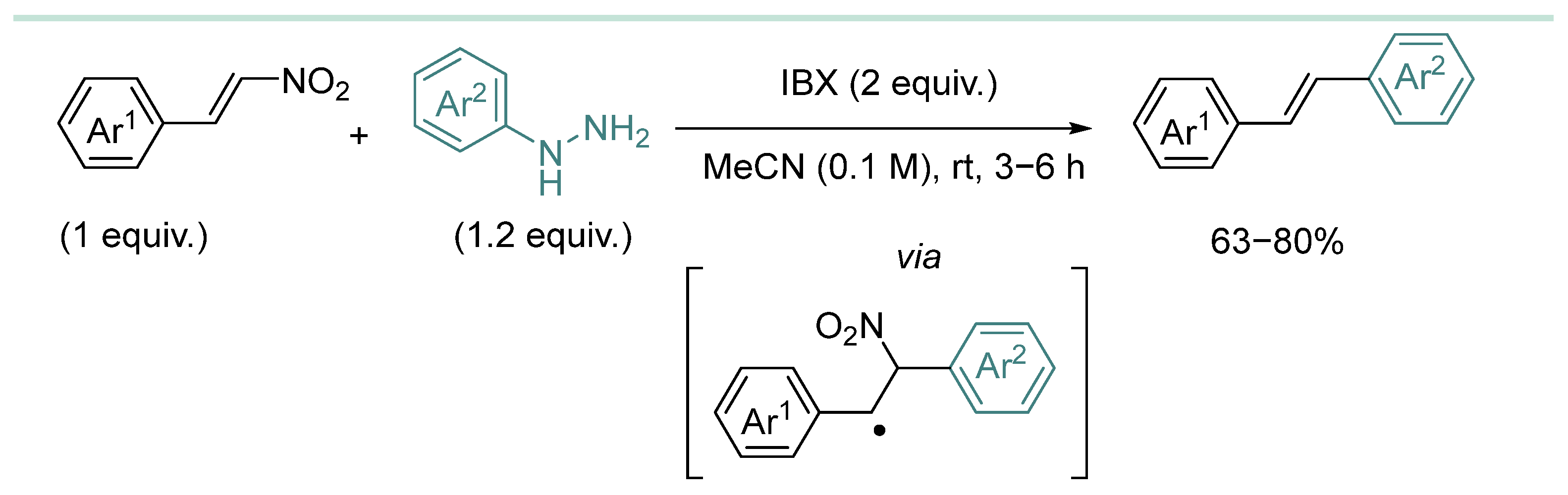 - Wagh, G.; Autade, S.; Patil, P.C.; Akamanchi, K.G. o-Iodoxybenzoic Acid Mediated Generation of Aryl Free Radicals: Synthesis of Stilbenes through C–C Cross-Coupling with β-Nitrostyrenes. New J. Chem. 2018, 42, 3301–3309. [Google Scholar] [CrossRef]