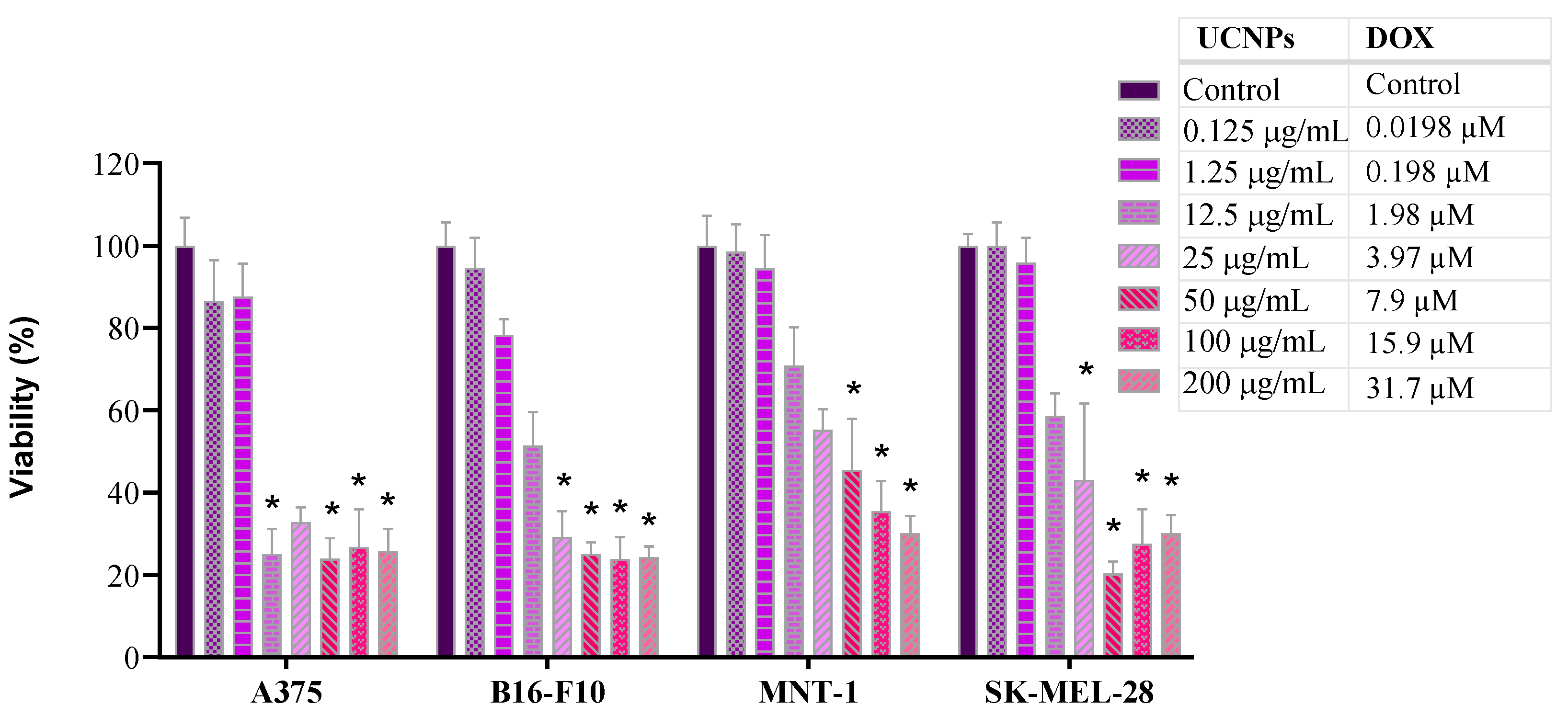 APA StyleOskoei, P., Afonso, R., Bastos, V., Nogueira, J., Keller, L.-M., Andresen, E., Saleh, M. I., Rühle, B., Resch-Genger, U., Daniel-da-Silva, A. L., & Oliveira, H. (2026). Upconversion Nanoparticles with Mesoporous Silica Coatings for Doxorubicin Targeted Delivery to Melanoma Cells. Molecules, 31(1), 74. https://doi.org/10.3390/molecules31010074