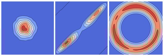 Additionally, a hyperspherical uniform distribution (h-CVAE) was tested, following the approach of Davidson et al. [34], where the latent space is confined to a uniform distribution over a hypersphere to promote anisotropy and to capture non-Gaussian distribution in another way, thus enhancing the model’s generative quality. The von Mises–Fisher (vMF) distribution, often referred to as the Normal Gaussian distribution on a hypersphere, was used for this purpose [35]. Its posterior distribution is parameterized by , and , which controls the concentration around μ. When k = 0, the vMF simplifies to a uniform distribution (Equation (4)):