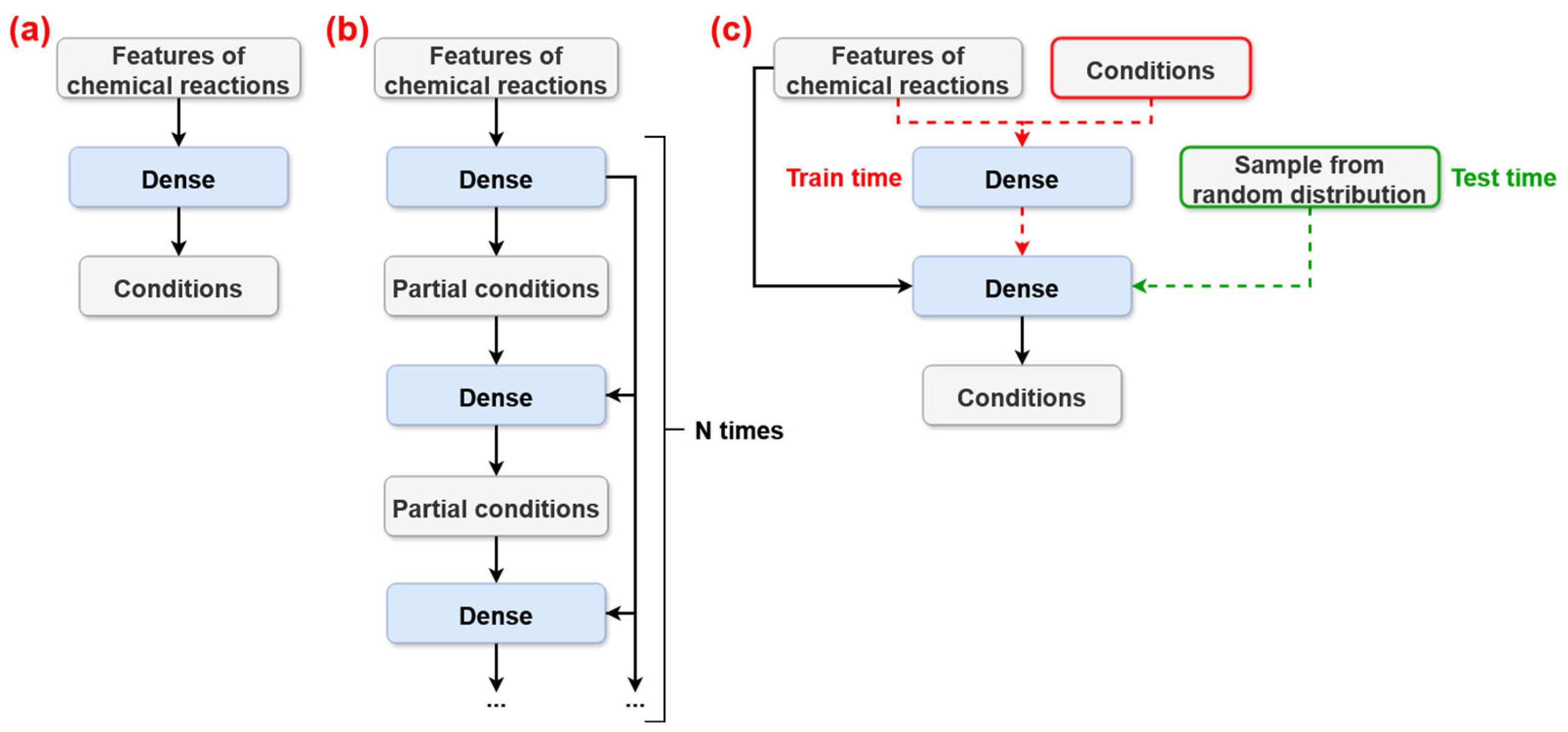 - Kwon, Y.; Kim, S.; Choi, Y.-S.; Kang, S. Generative Modeling to Predict Multiple Suitable Conditions for Chemical Reactions. J. Chem. Inf. Model. 2022, 62, 5952–5960. [Google Scholar] [CrossRef]