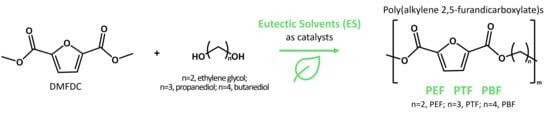 Chicago/Turabian StyleAgostinho, Beatriz, Vinícius de Paula, Armando J. D. Silvestre, and Andreia F. Sousa. 2026. "The Evaluation of Eutectic Solvents as Catalysts for Mediating the Greener Synthesis of Poly(alkylene 2,5-furandicarboxylate)s" Molecules 31, no. 1: 77. https://doi.org/10.3390/molecules31010077