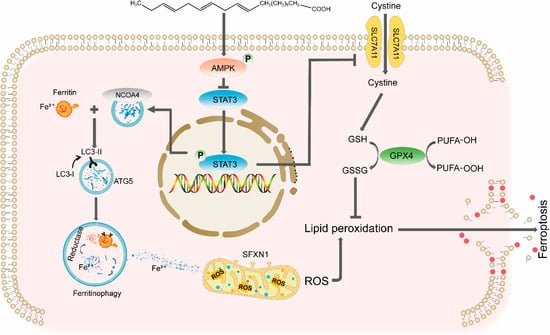 - Xie, J.; Luo, D.; Xing, P.; Ding, W. The Dual Roles of STAT3 in Ferroptosis: Mechanism, Regulation and Therapeutic Potential. J. Inflamm. Res. 2025, 18, 4251–4266. [Google Scholar] [CrossRef]