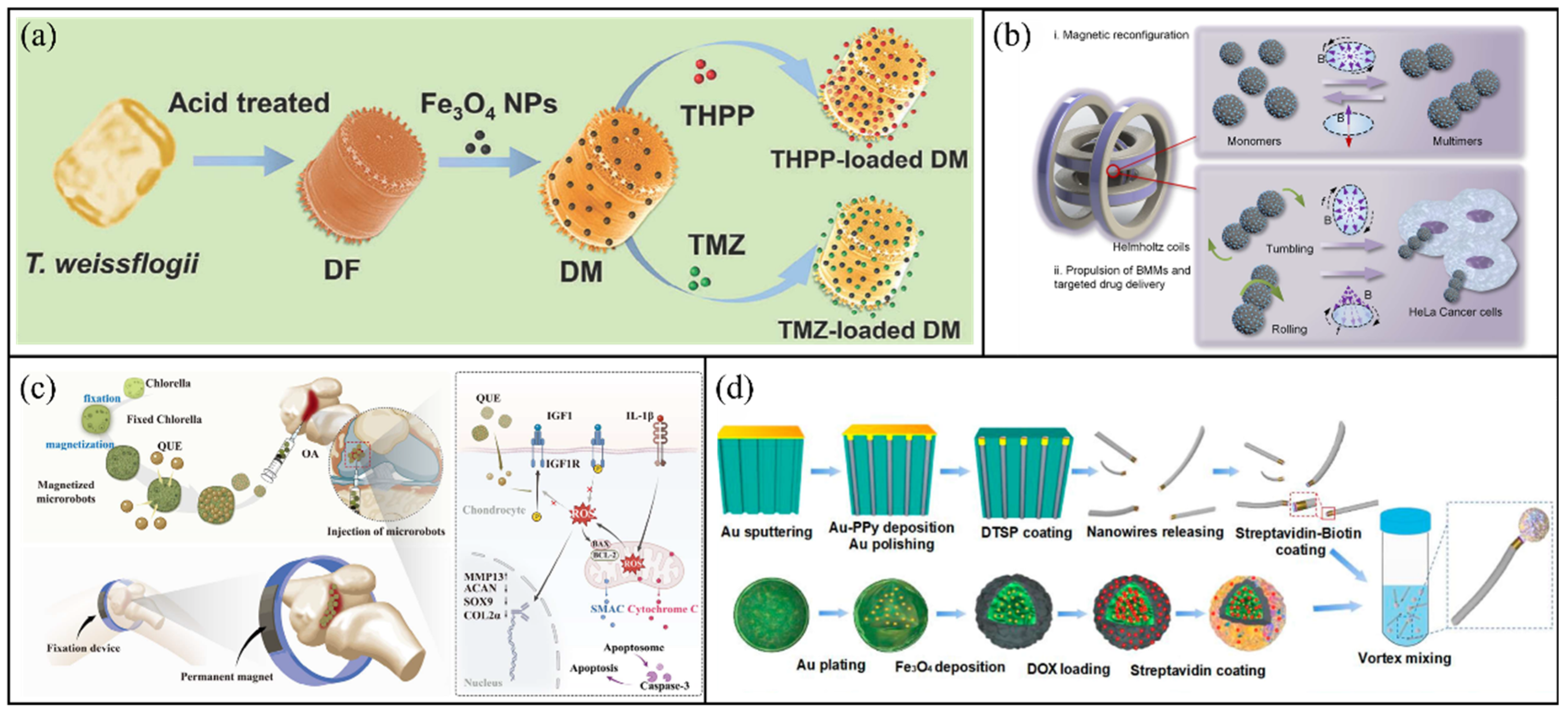 41]. By integrating magnetic particles with these natural structures, this approach synergizes innate biological functions with external magnetic control capabilities, thereby offering exceptional biocompatibility and efficient self-propulsion within complex physiological environments [
