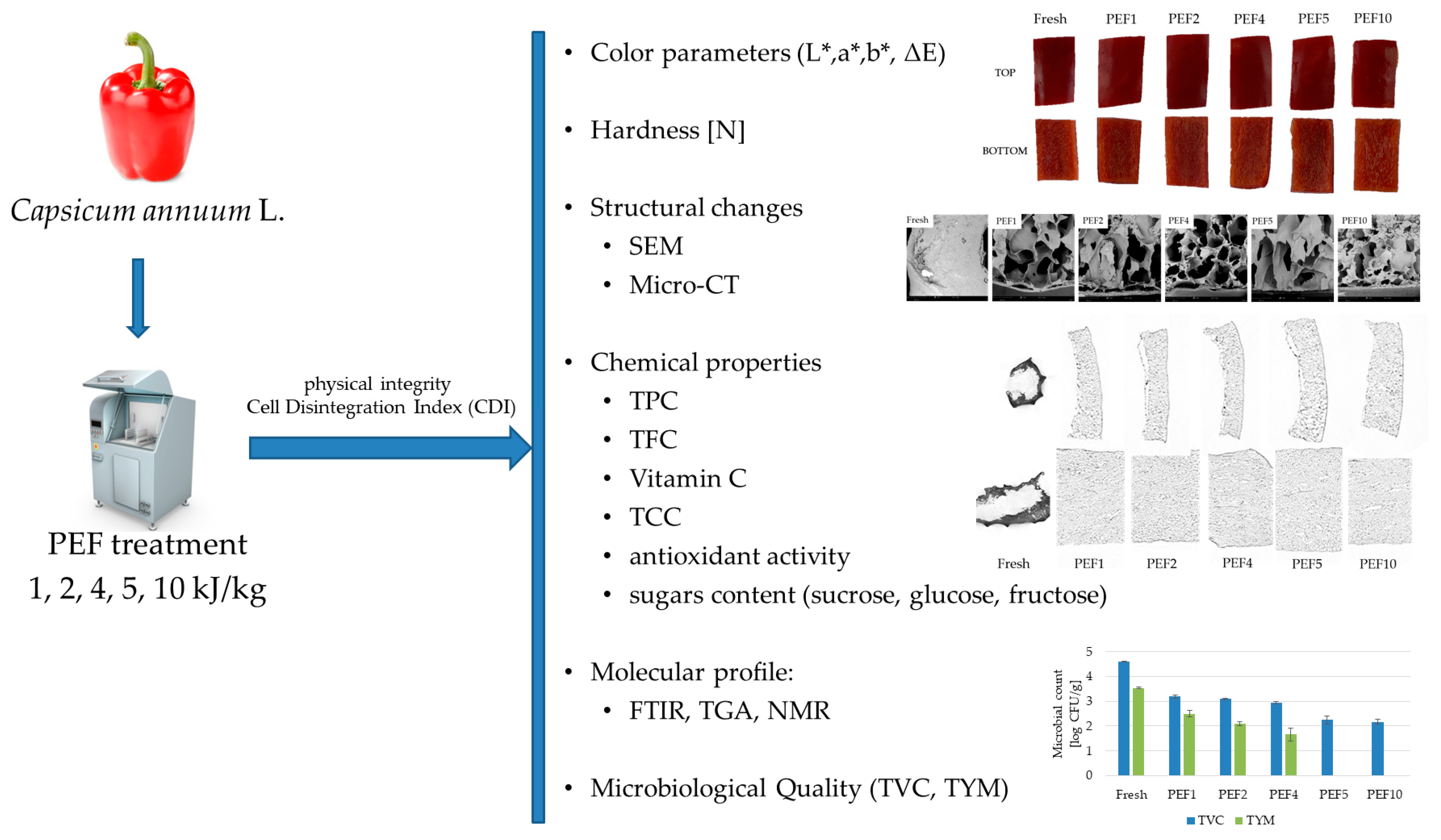 2.3. Effect of PEF Treatment on Microbial Stability of the Red Bell Pepper