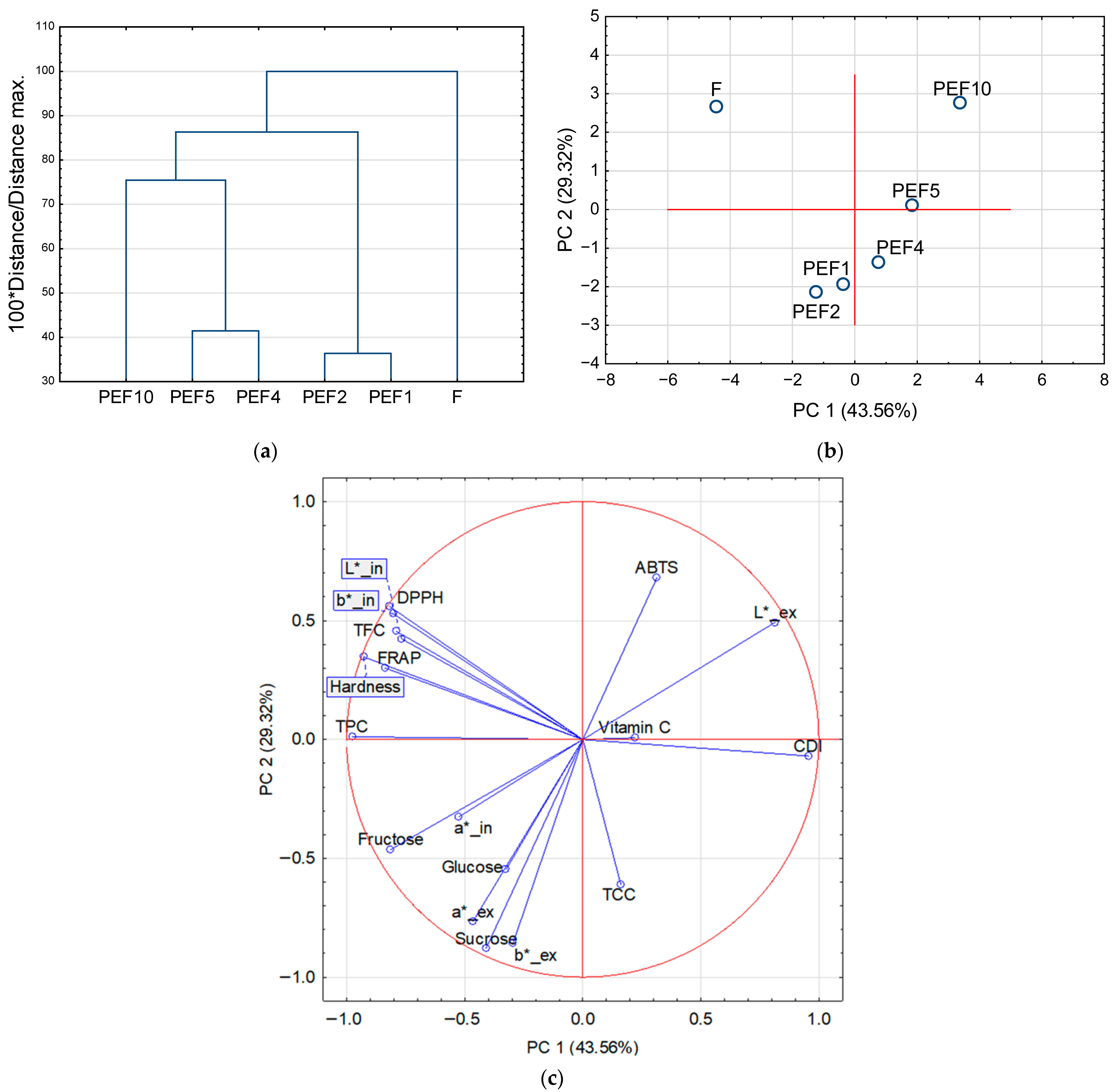 | PEF5 | 0.53 ± 0.05 b | 23.2 ± 0.57 c | 27.9 ± 1.27 b |