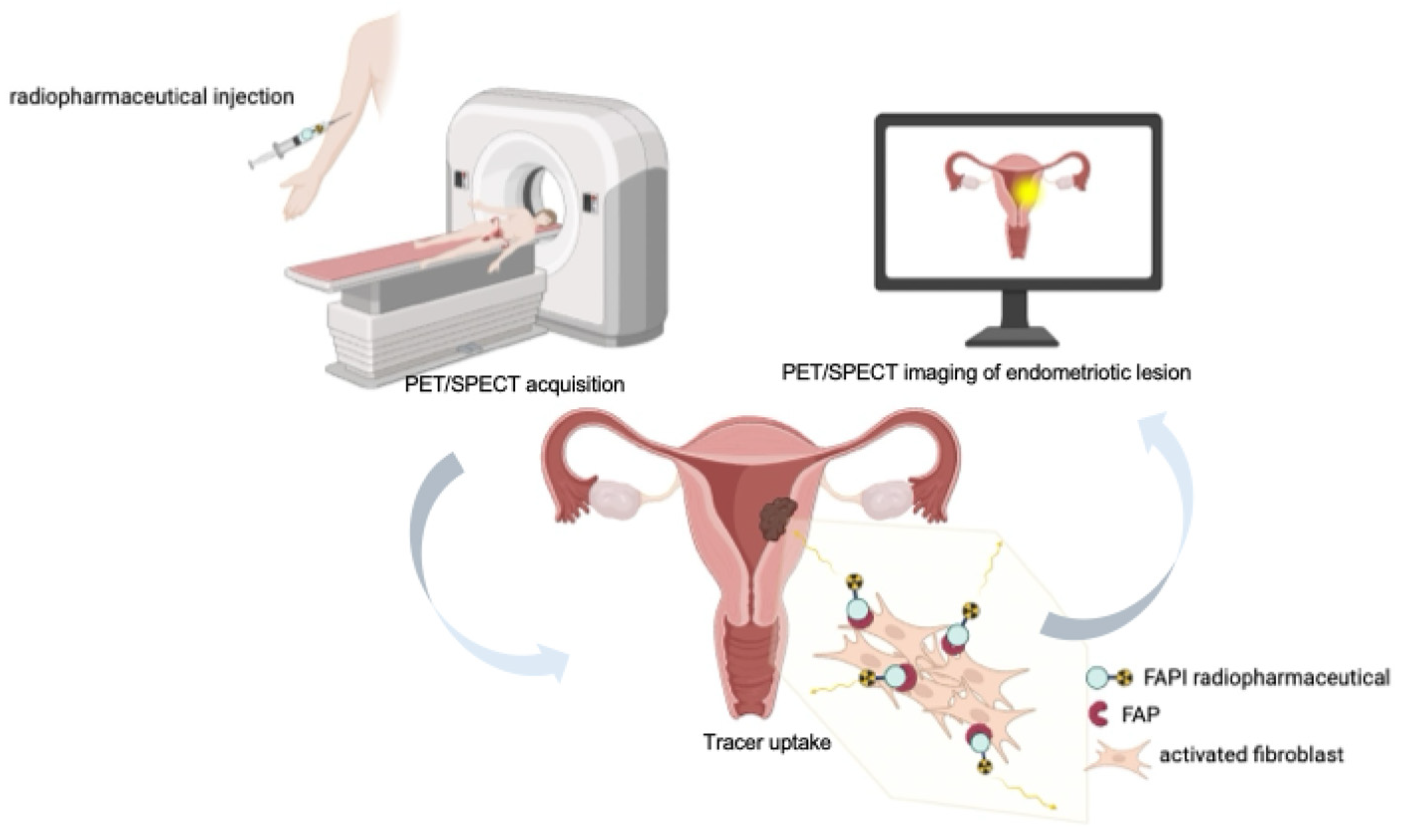The greatest promise of molecular imaging in endometriosis lies in targeting the disease’s key pathological features, fibrosis and chronic inflammation. One of the most promising strategies involves imaging the Fibroblast Activation Protein (FAP), a well-established biomarker of activated fibroblasts within pathological stroma [