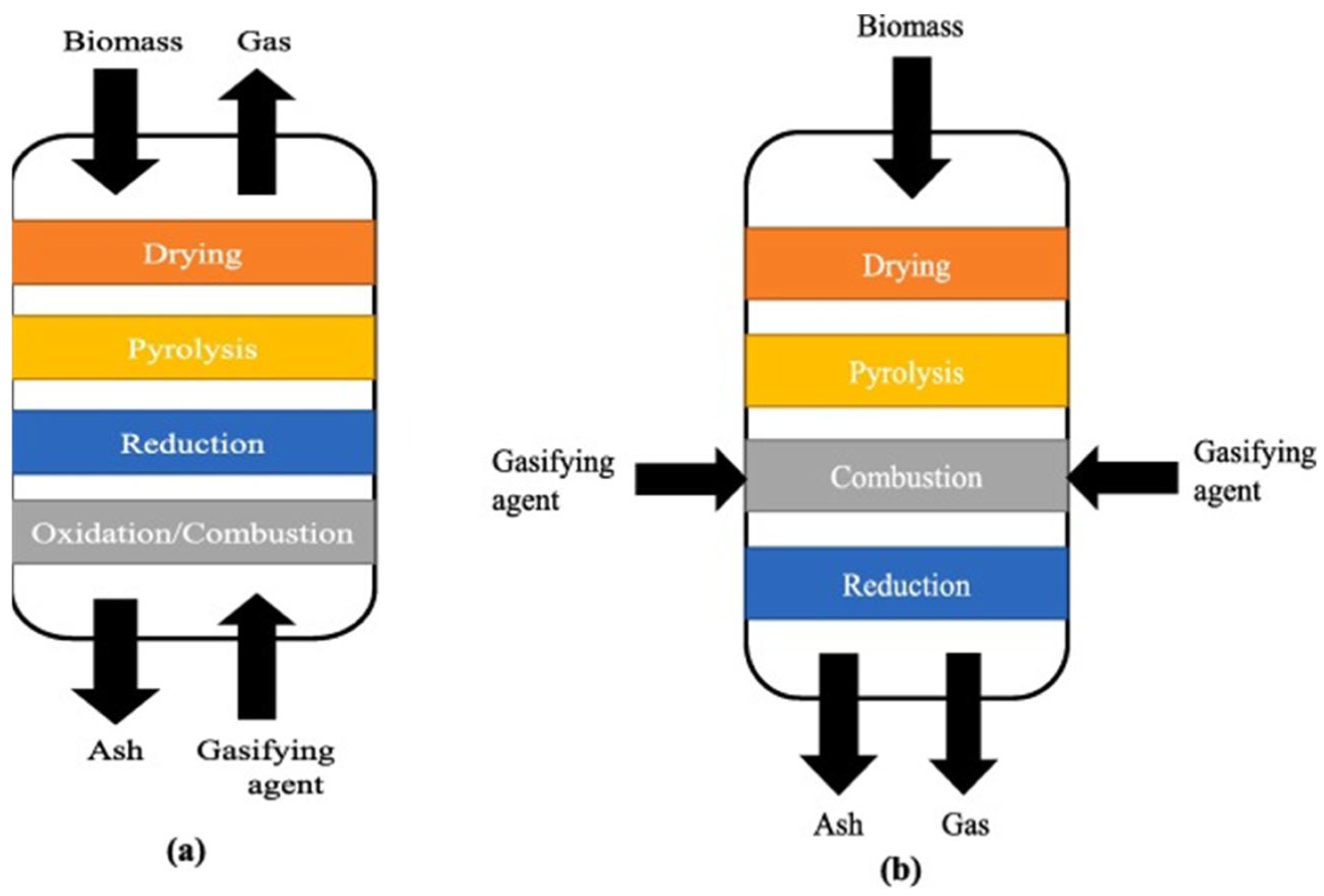 - Tezer, O.; Karabag, N.; Ozturk, M.U.; Ongen, A.; Ayol, A. Comparison of green waste gasification performance in updraft and downdraft fixed bed gasifiers. Int. J. Hydrogen Energy 2022, 47, 31864–31876. [Google Scholar] [CrossRef]