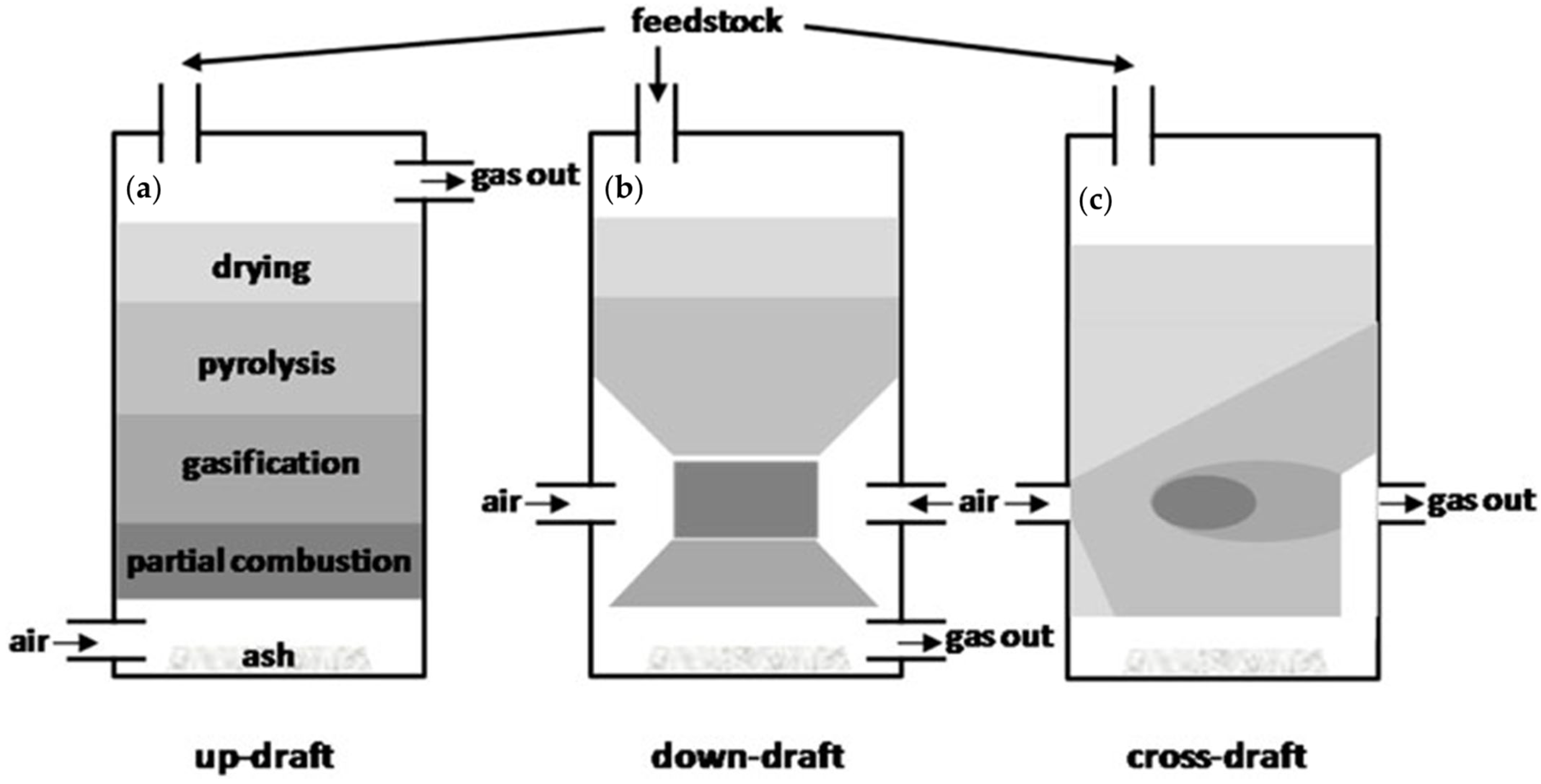 - Sharma, P.; Gupta, B.; Pandey, M.; Bisen, K.S.; Baredar, P. Downdraft biomass gasification: A review on concepts, designs analysis, modelling and recent advances. Mater. Today Proc. 2021, 46, 5333–5341. [Google Scholar] [CrossRef]