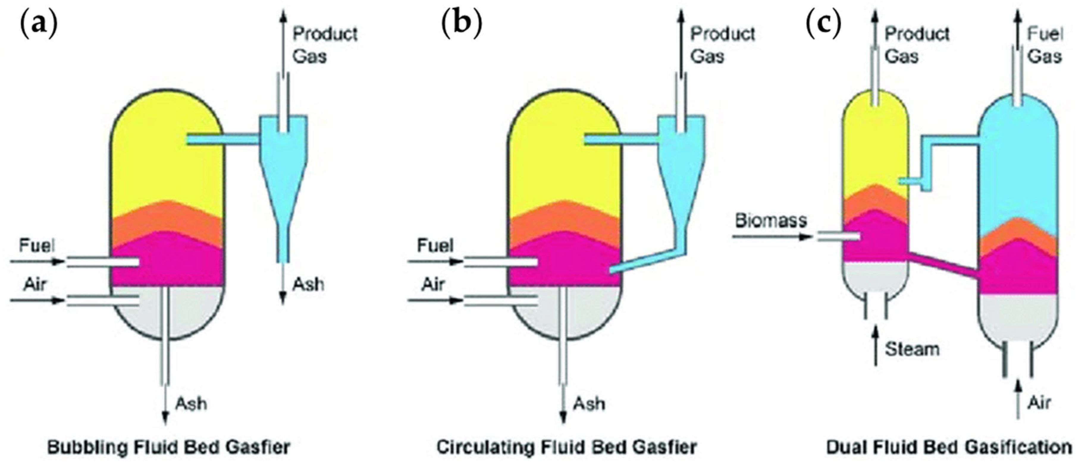- Wang, L.; Zhou, T.; Hou, B.; Yang, H.; Hu, N.; Zhang, M. A Comprehensive Review of Biomass Gasification Characteristics in Fluidized Bed Reactors: Progress, Challenges, and Future Directions. Fluids 2025, 10, 147. [Google Scholar] [CrossRef]