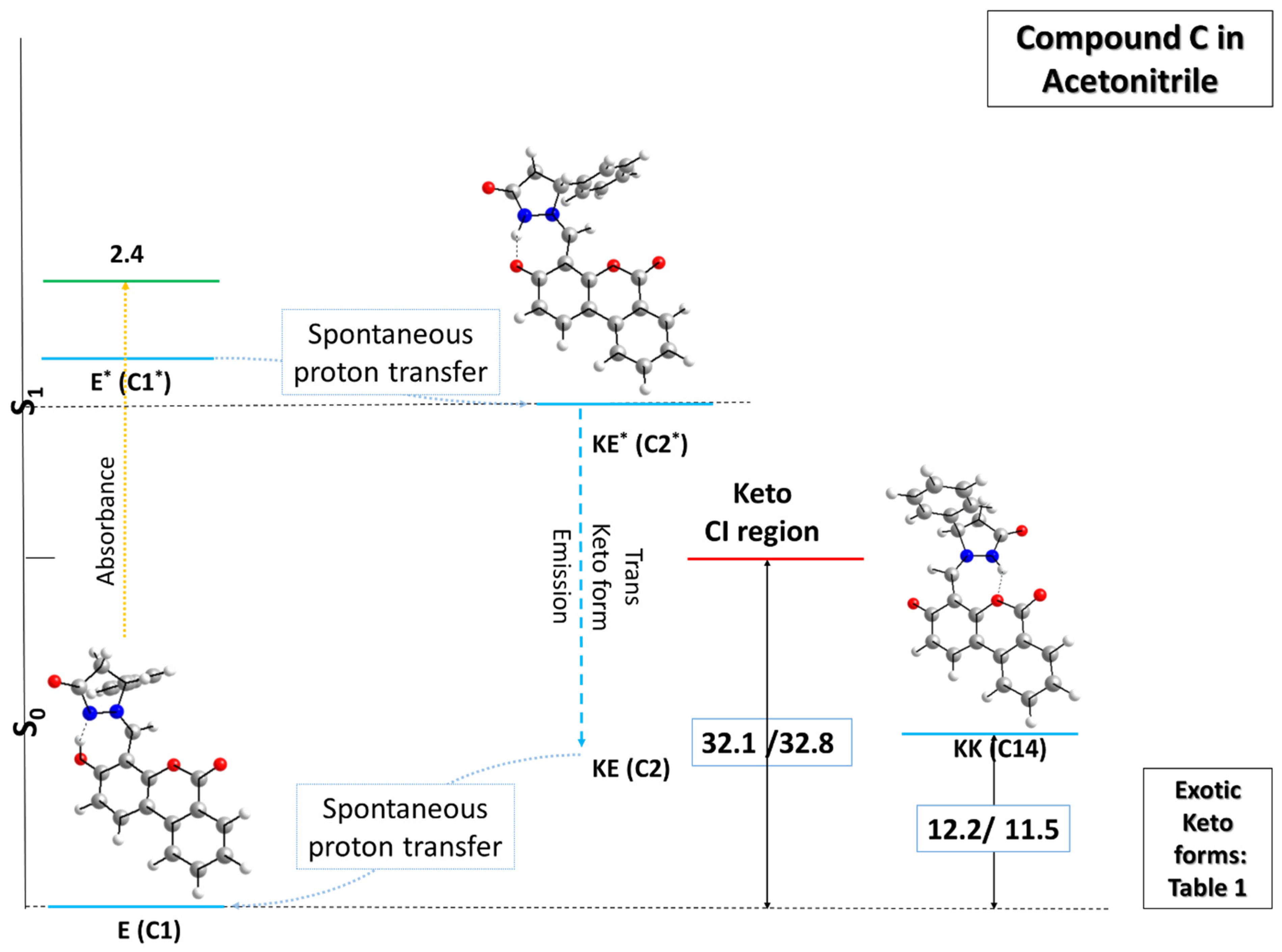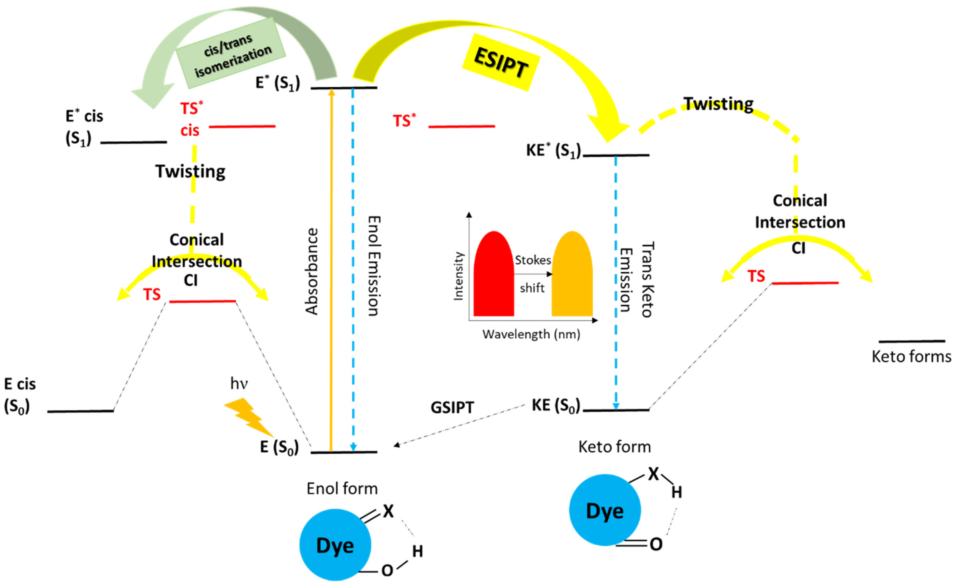 - Antonov, L.; Joshi, H.C. Excited state Intramolecular Proton Transfer: A Short Introductory Review. Molecules 2021, 26, 1475. [Google Scholar] [CrossRef]