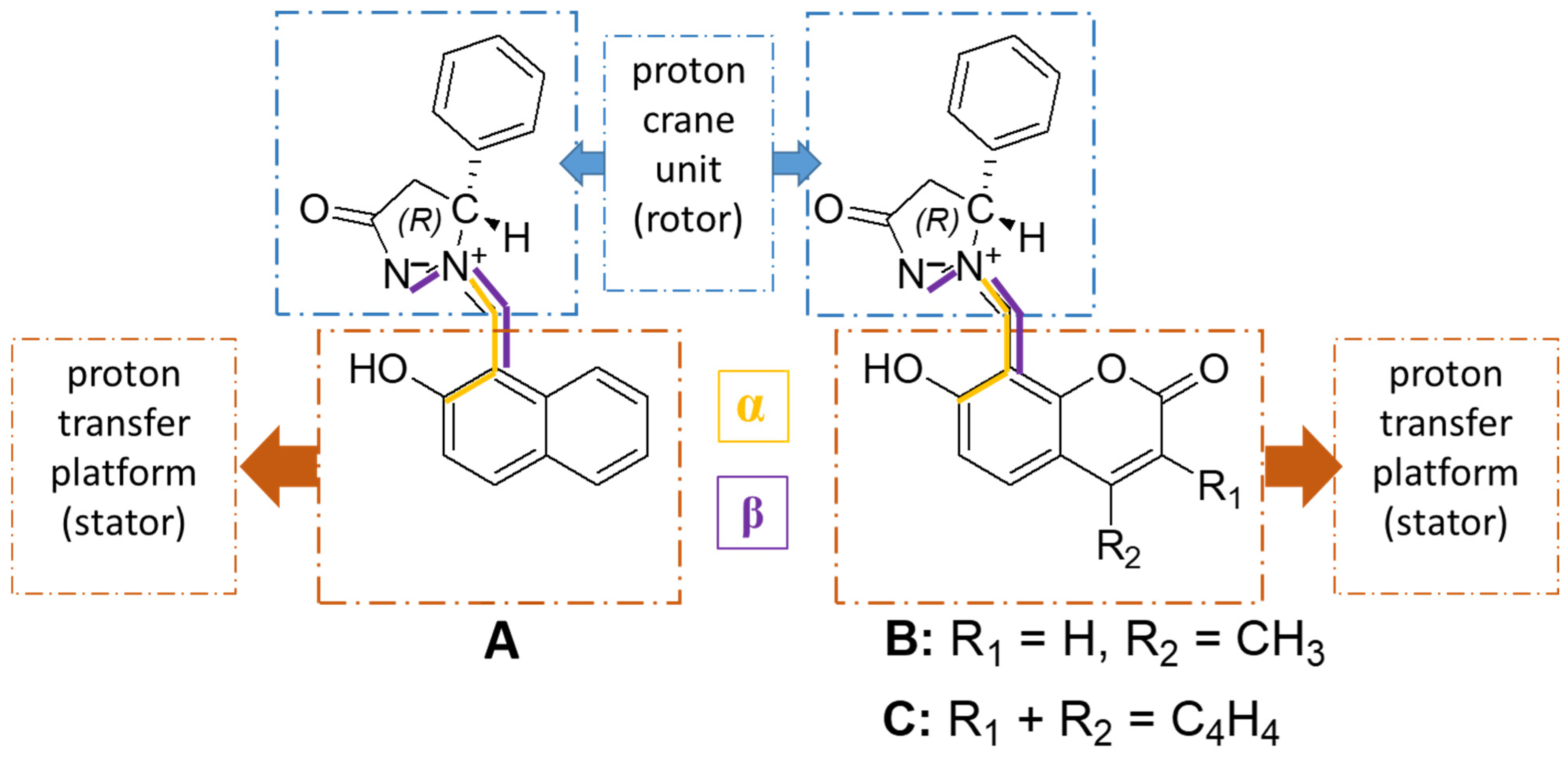 - Slavova, S.; Antonov, L. Theoretical Understanding of the Long-Range Proton Transfer Mechanism in 7-Hydroxy Quinoline-Based Molecular Switches: Varma’s Proton Crane and Its Analogues. J. Phys. Chem. A 2024, 128, 1280–1287. [Google Scholar] [CrossRef]